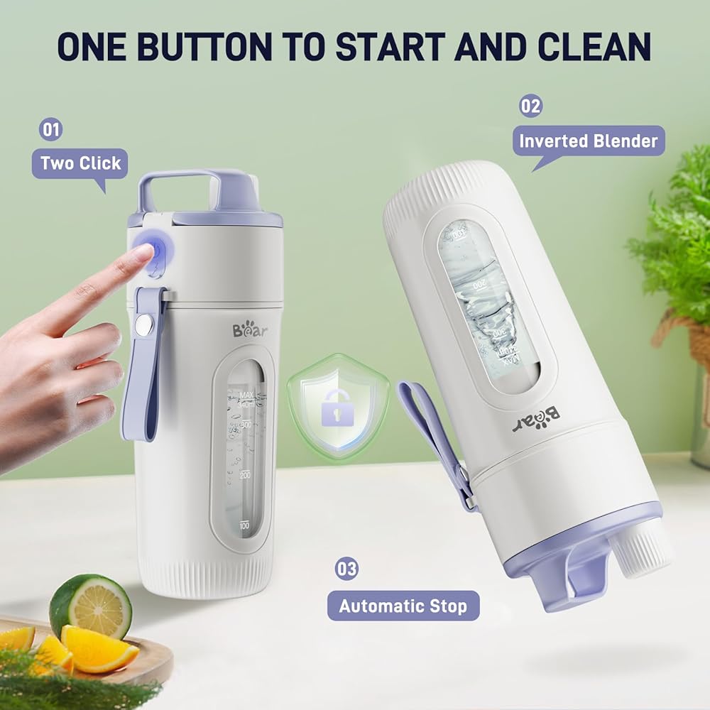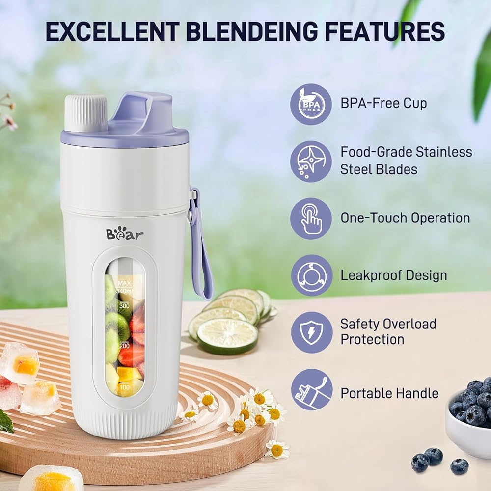 هدية مثالية للصحة: اسعد أحبائك بخلاط BEAR المحمول - هدية فريدة تجلب الصحة لكل رشفة! اصنع العصائر والمخفوقات وأغذية الأطفال دون عناء. أكثر من مجرد خلاط، فهو يمكن استخدامه كزجاجة مياه خفيفة الوزن وقابلة للحمل. الارتياح الخاص بك هو اولويتنا القصوى. ثق في BEAR للحصول على جودة دائمة، مدعومة بسياسة إرجاع/استبدال أطول وخدمة مدى الحياة. إذا ظهرت أي مشاكل، فنحن مجرد رسالة. اختر الجودة الدائمة لأسلوب حياة أكثر صحة!