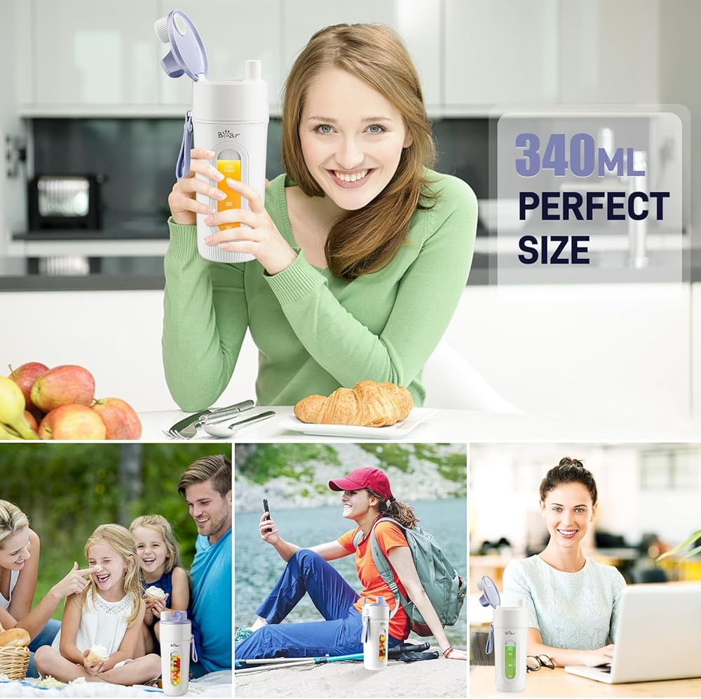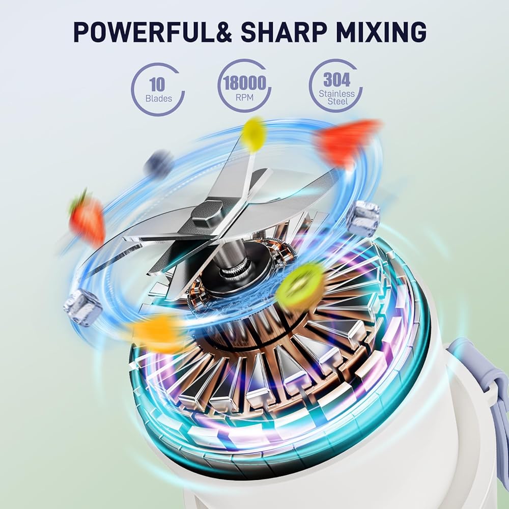 خلاط بير المحمول، 10 شفرات محدثة وخلاط شخصي لاسلكي قابل لإعادة الشحن عبر USB، خلاط للمخفوقات والعصائر مع كوب سفر خالٍ من مادة BPA سعة 12 أونصة، غطاء مانع للتسرب، فوهة رشفة للسفر وصالة الألعاب الرياضية والمكتب