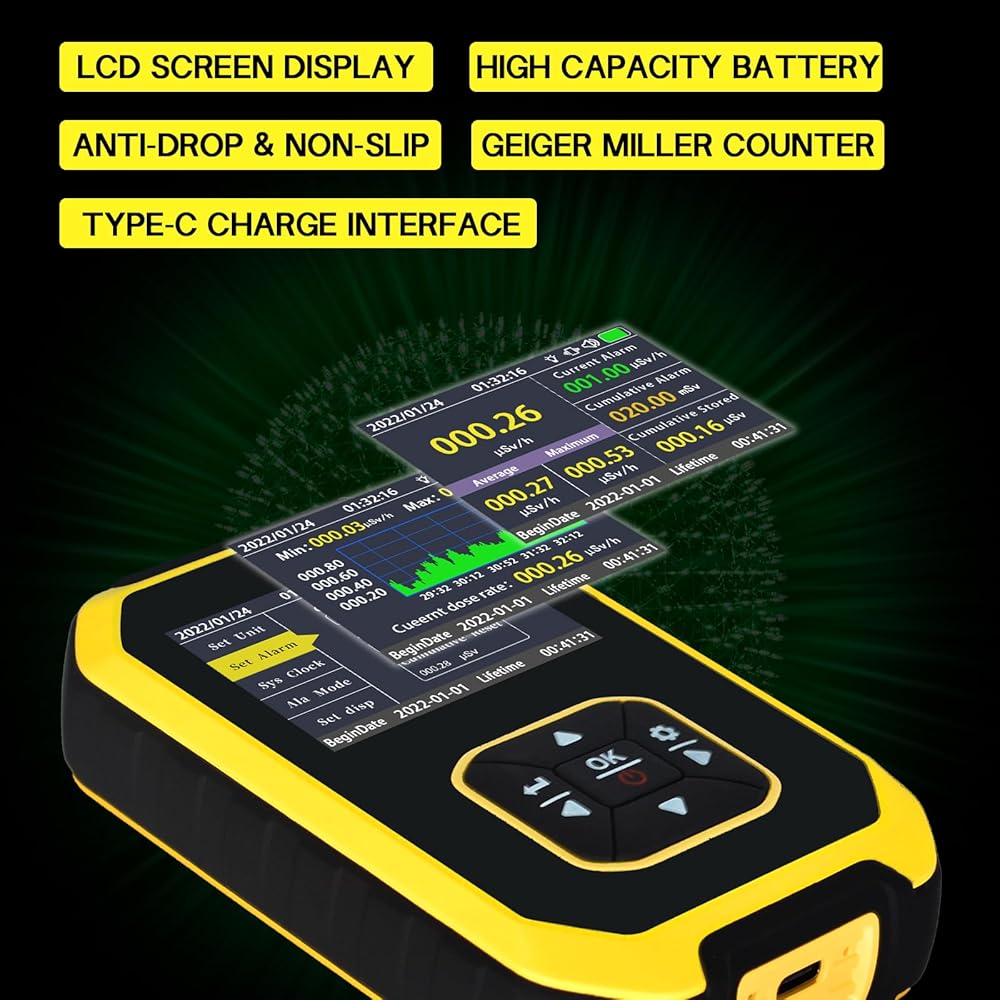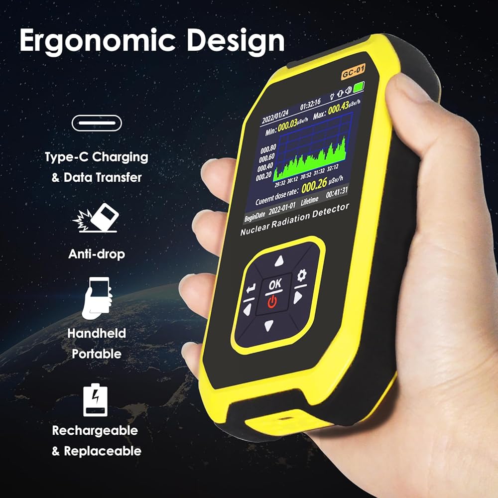 Geiger Counter Nuclear Radiation Detector Handheld Beta Gamma X-ray Rechargeable Radiation Monitor Meter