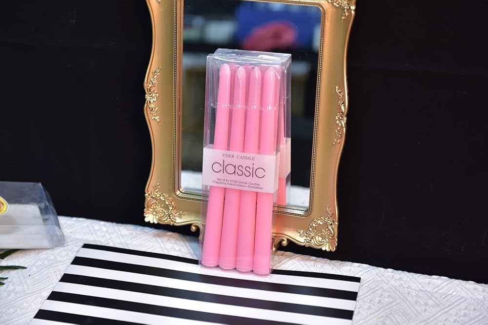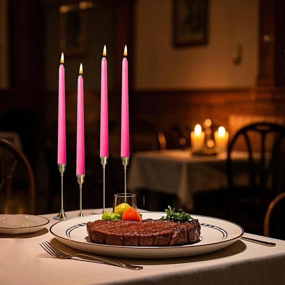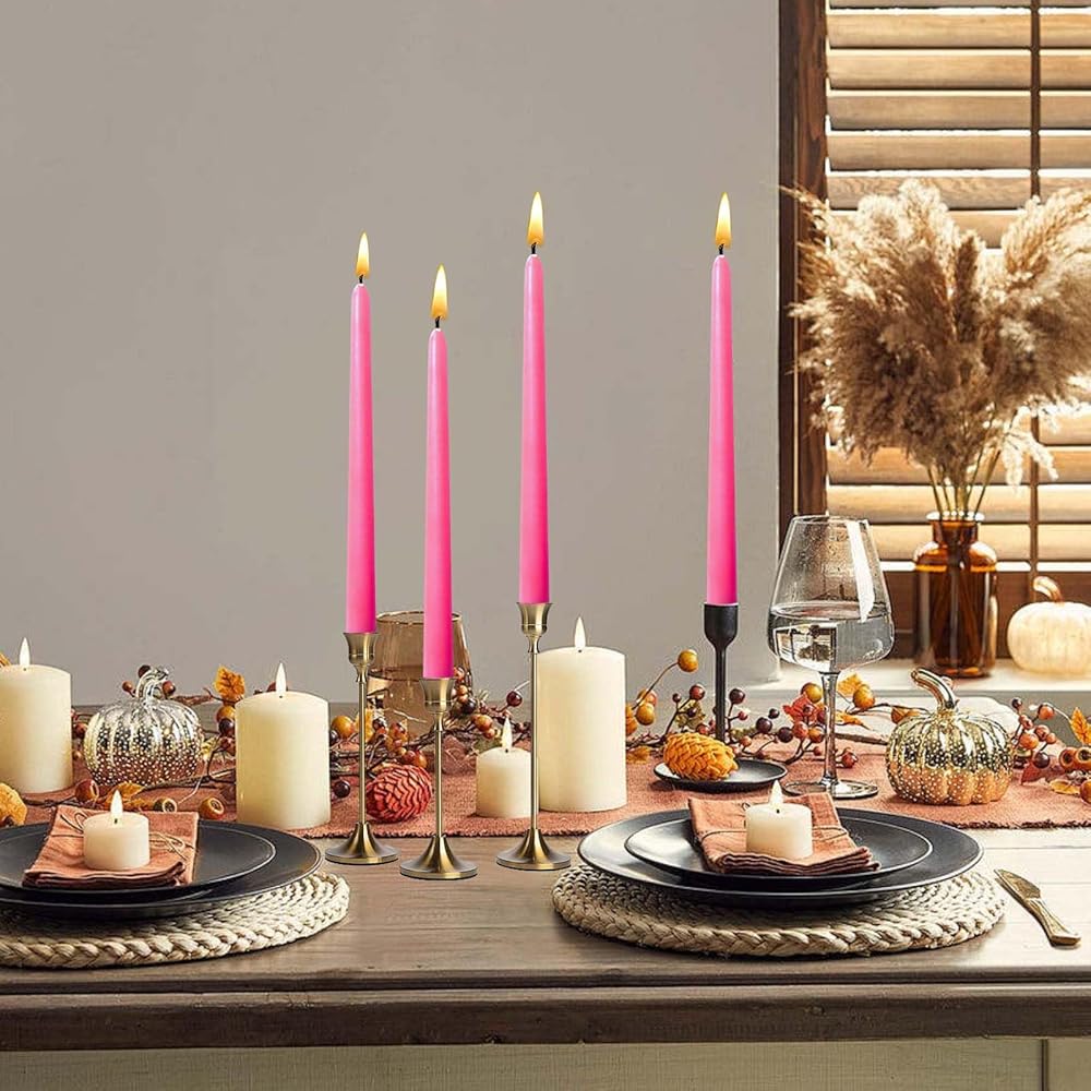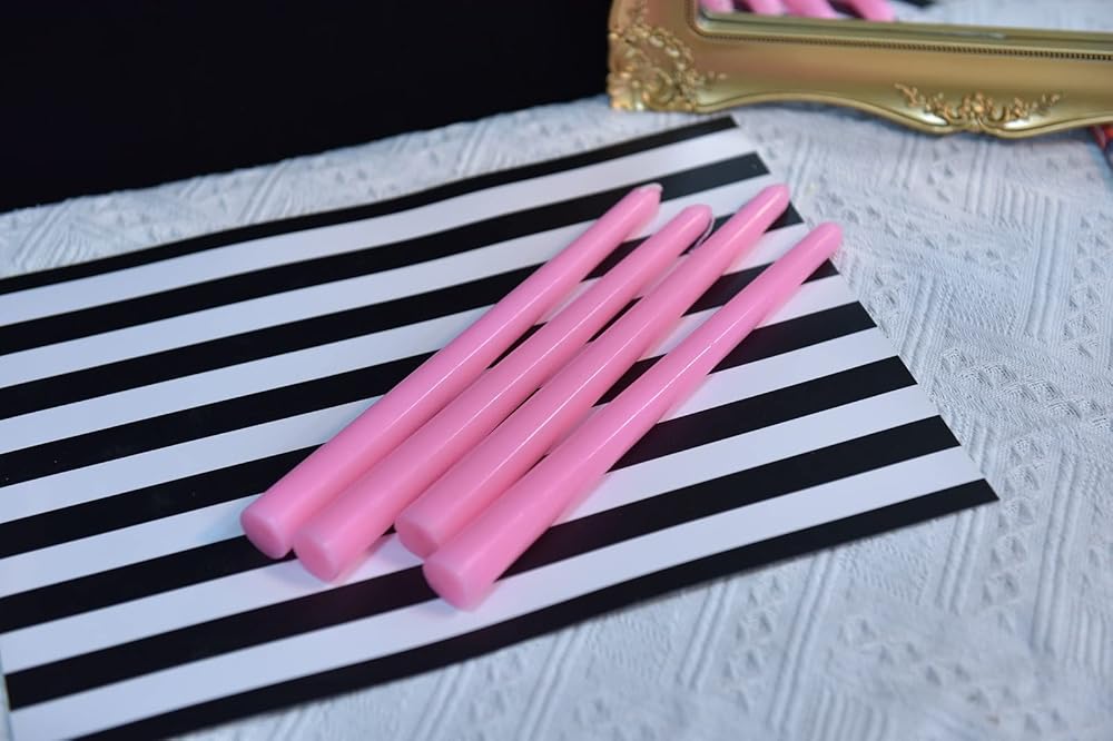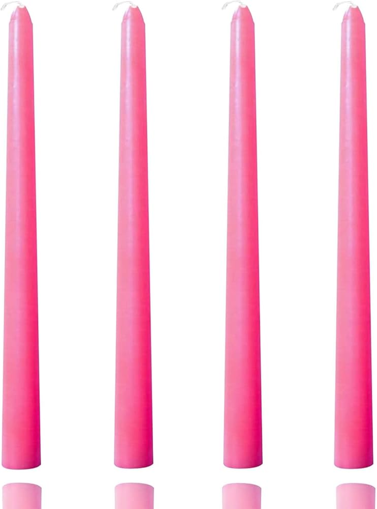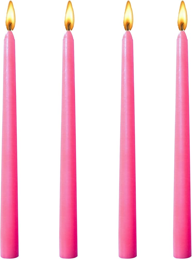 شموع مستدقة وردية مقاس 10 بوصة - مجموعة من 4 شموع مستدقة - بدون دخان ولا تقطر، شموع طويلة، عشاء منزلي، حفلة، زفاف، عيد الهالوين، الكنائس، شموع عيد الميلاد