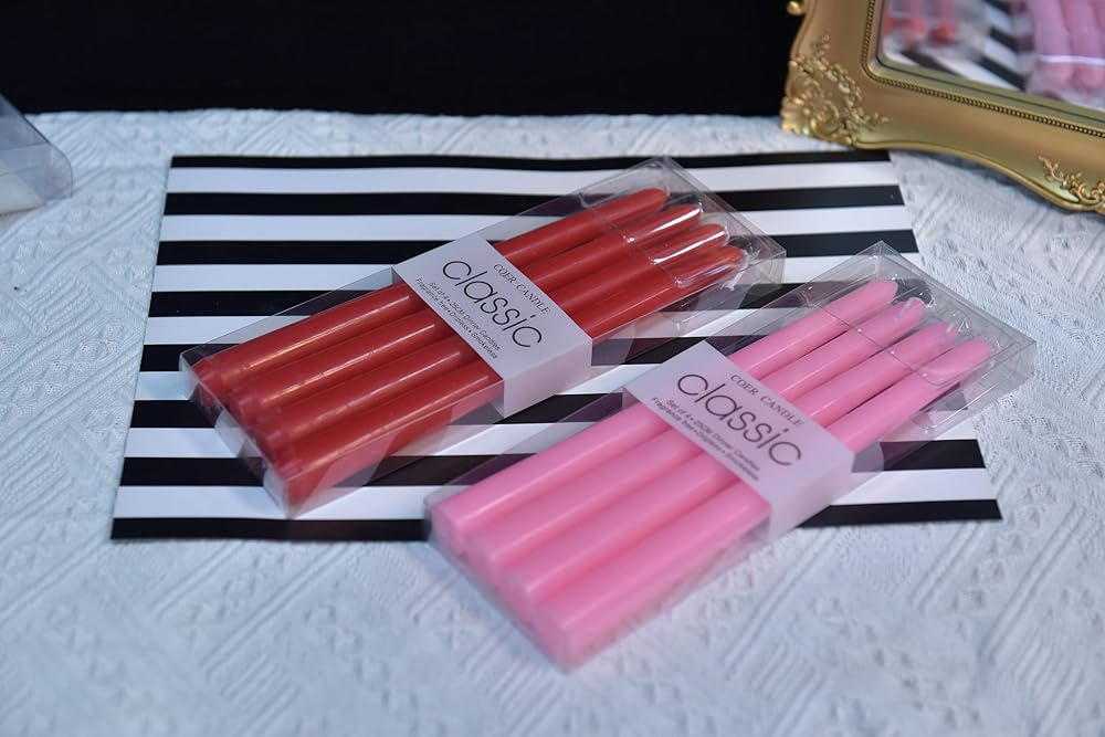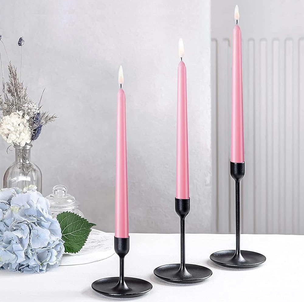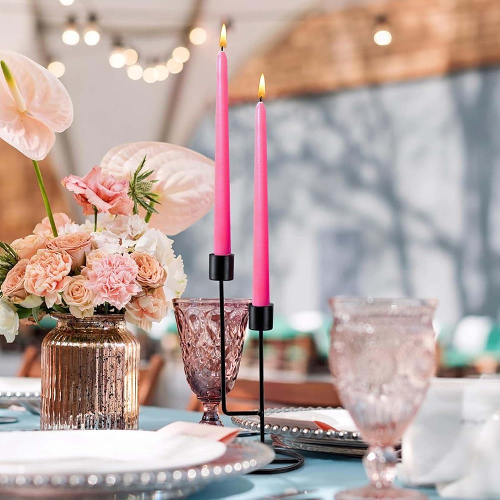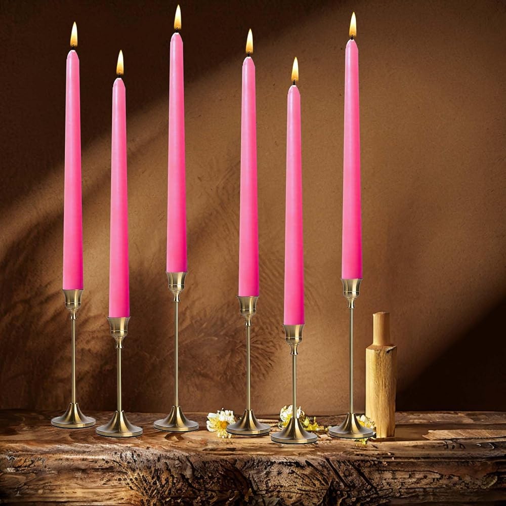 🕯️[حجم الشموع]: وردي 10 بوصة / 25 سم في الطول، حوالي 0.8 بوصة / 2 سم في القطر السفلي. 7.5-8 ساعات من الحرق. مع قاعدة 3/4 بوصة، فإنها تناسب معظم الشموع والشمعدانات - تحمل بإحكام جميع الشموع القياسية والشموع الزجاجية المدببة - حاملات الشموع.