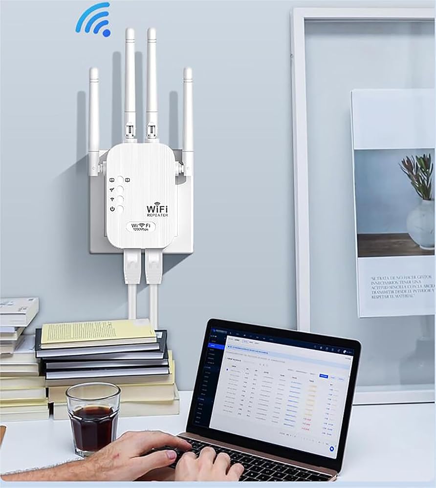 موسع واي فاي، معزز إشارة موسعات واي فاي للمنزل حتى 9000 قدم مربع 5 جيجا/2.4 جيجا، موسع نطاق واي فاي، مكرر لاسلكي، مكبر صوت طويل المدى مع منفذ إيثرنت، متوافق مع أليكسا