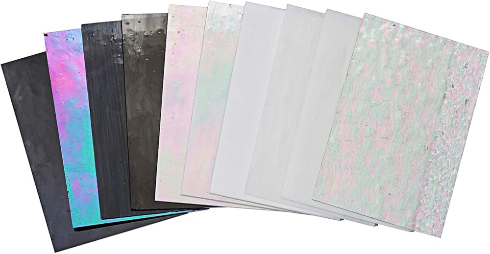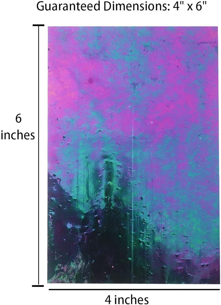 With dimensions of 4" x 6" for each sheet, this set provides you with the perfect canvas size to express your creativity. Guaranteed consistency in dimensions means no surprises – just smooth, hassle-free crafting Designed with your ease in mind, each sheet boasts excellent cutting performance. Whether you're a seasoned artisan or a newcomer to the world of glasswork, the simplicity of cutting these sheets ensures that your artistic vision comes to life effortlessly.