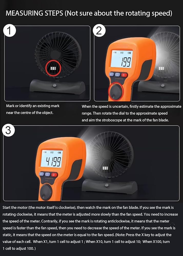 Non-contact measurement: Tachometer uses a non-contact LED stroboscope to measure RPM, safe and easy to use