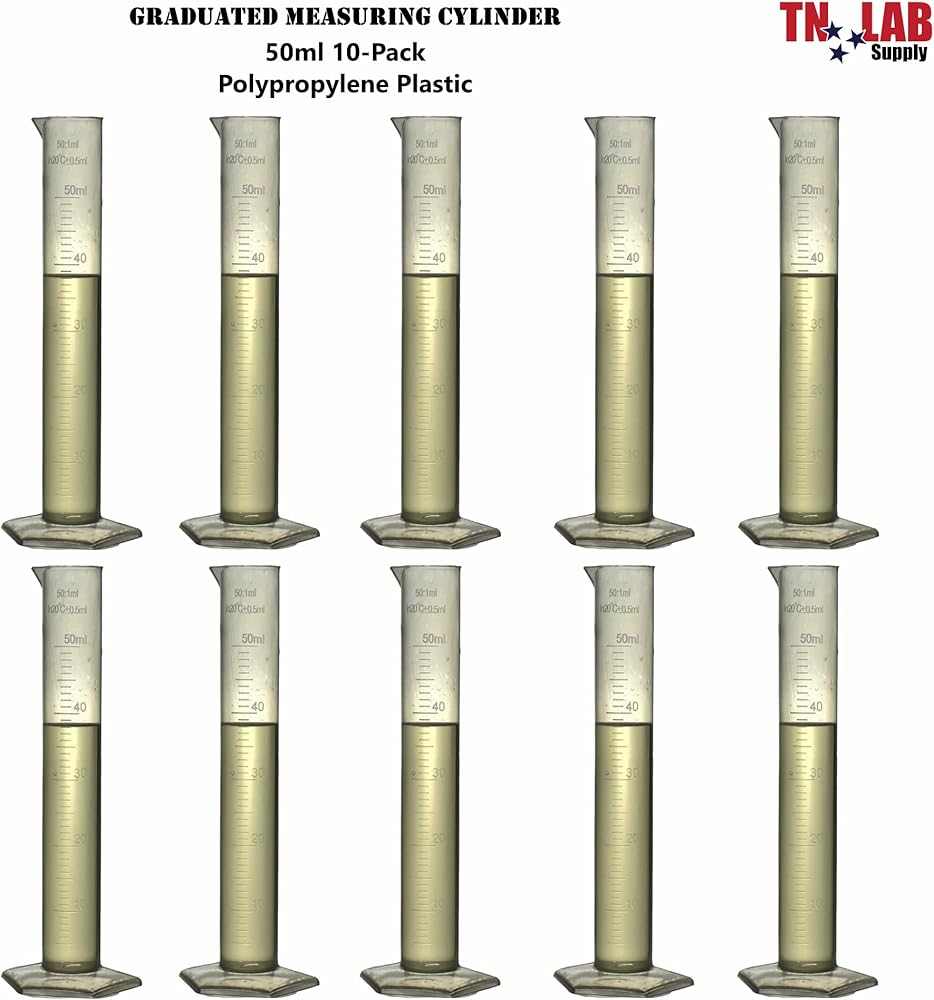 TN LAB Polypropylene Plastic Graduated Measuring Cylinder 50ml 10-Pack