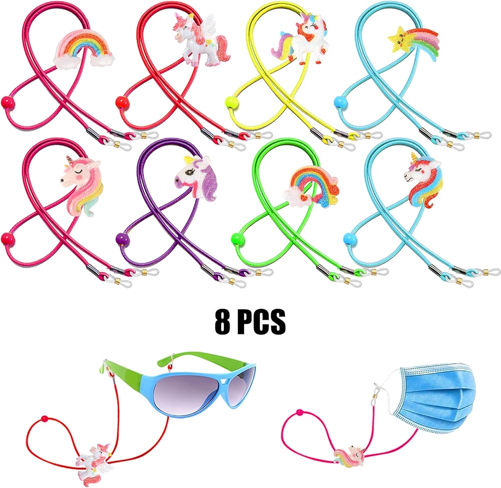 الكمية: سوف تحصل على 8 قطع من أحزمة النظارات ذات تصميم وحيد القرن بألوان قوس قزح. هذه الأشرطة النظارات مصنوعة بشكل جيد.