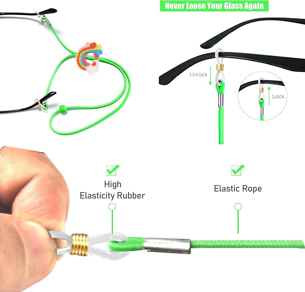 المناسبات: يمكن لأشرطة النظارات تزيين النظارات، وإمساك النظارات جيدًا، ومنع النظارات من الانزلاق أو الضياع. مناسبة للفصل والرياضة واللعب. ويمكن استخدامه أيضًا كهدية للأطفال والأصدقاء وما إلى ذلك.