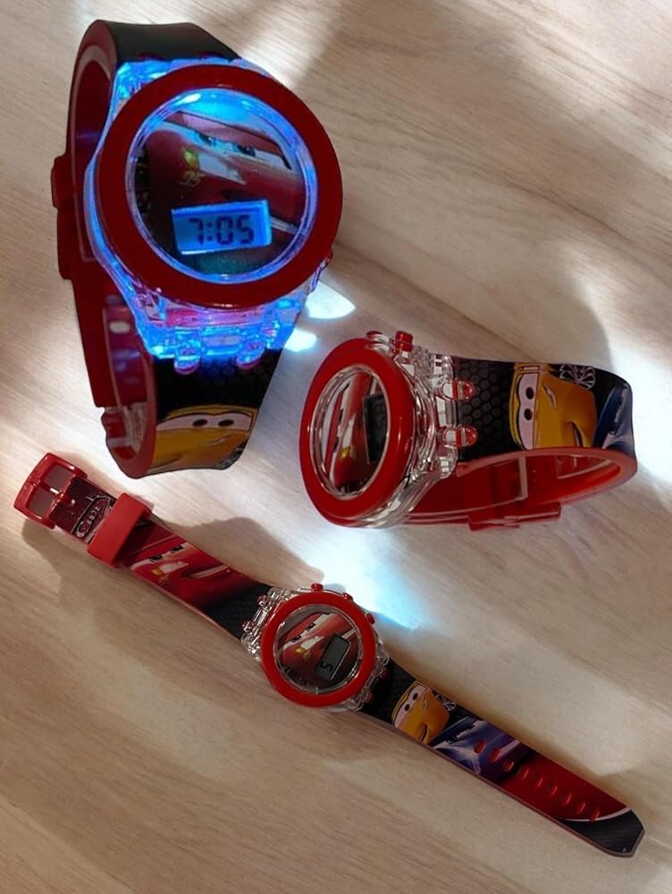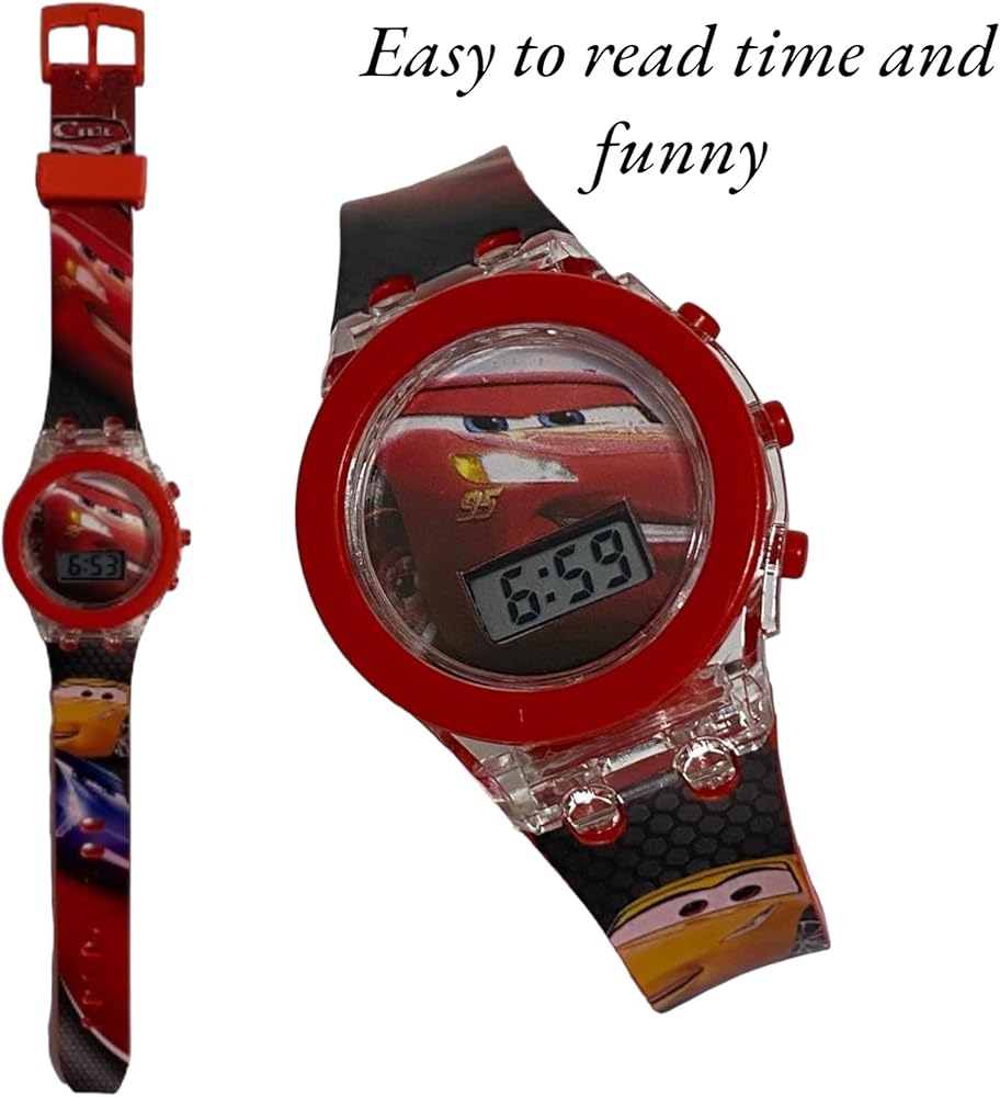 • - ساعة أطفال بإضاءة فلاش مضيئة رقمية كوارتز بلاستيك تايم ماكوين للأطفال الصغار الأولاد والبنات مع حافظة من الكريستال للأطفال بعمر 3 سنوات فما فوق. خفيفة الوزن ومريحة لارتداء الأطفال؛ ساعة ماكوين للأطفال بتصميم كرتوني لطيف