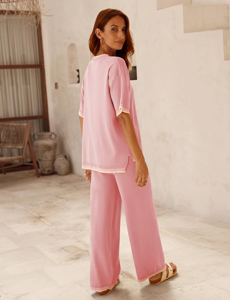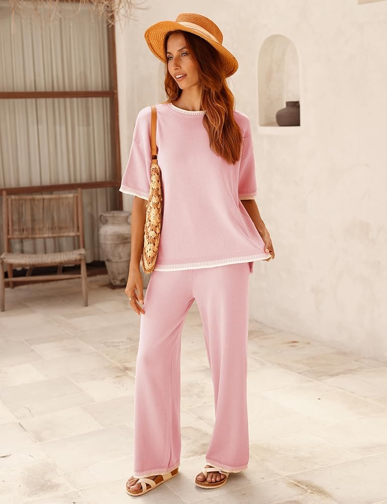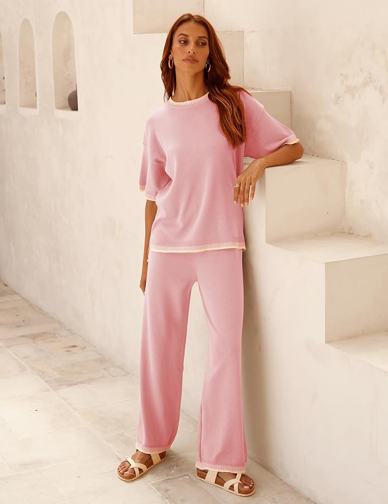 طقم ملابس كاجوال محبوك من قطعتين للنساء، يمكن ارتداؤه كمجموعة أو بشكل منفصل، مناسب للارتداء في المنزل كبيجامة، أو يمكنك ارتداؤه للتسوق والمواعدة والأنشطة الخارجية الأخرى
