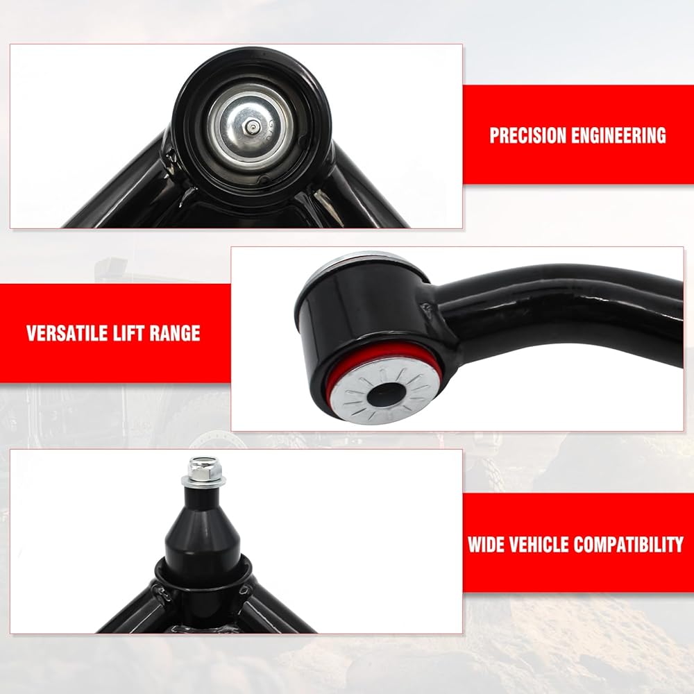 ملاءمة مثالية لسيارة تاكوما الخاصة بك: تم تصميمها لتناسب موديلات تويوتا تاكوما 2005-2022 بسلاسة، وتضمن أذرع التحكم العلوية الأمامية لدينا التوافق والملاءمة المثالية. قم بترقية سيارتك بثقة باستخدام منتج مصمم خصيصًا لشاحنتك.