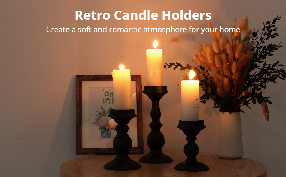 【مظهر قديم وأنيق: مصنوع بلمسة نهائية سوداء غير لامعة وخطوط ناعمة، يضيف حامل الشموع الخاص بنا لمسة من الرقي إلى أي مساحة، مما يخلق جوًا ناعمًا ومريحًا ومريحًا ورومانسيًا. المظهر القديم الفريد يجعله مناسبًا لمختلف أنماط التصميم الداخلي مثل الريفي والشمالي والعتيق
