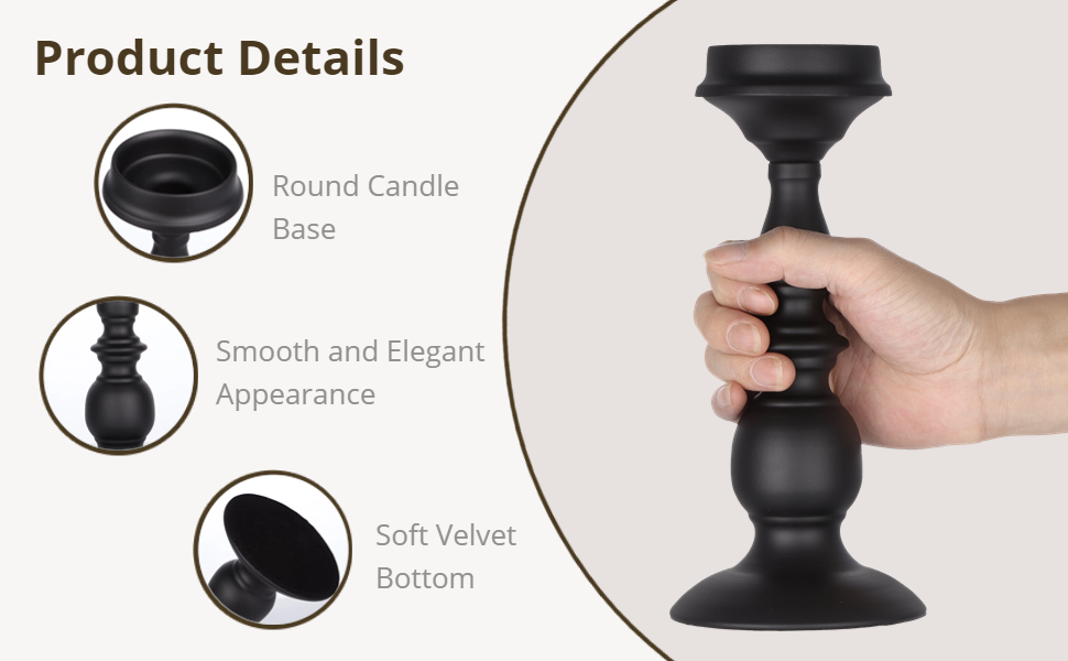 【قاعدة مخملية ناعمة】مع قاعدة مخملية ناعمة، توفر حاملات الشموع لدينا حماية فائقة للأثاث من الخدوش مع منع أي انزلاق غير مرغوب فيه. بالإضافة إلى ذلك، تم تصميم كل حامل شموع بقاعدة دائرية موسعة لتوفير ثبات معزز، وضمان وضع آمن لشمعتك
