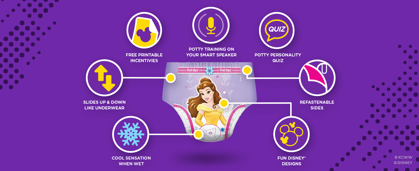 • Customize your child's waistband and easily check for messes with Pull-Ups' refastenable sides