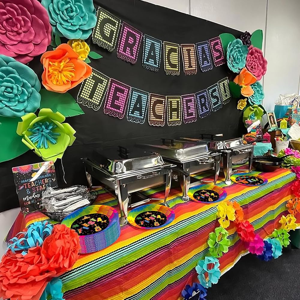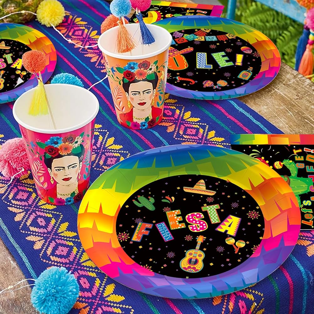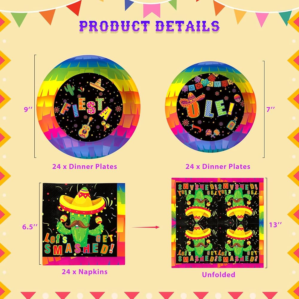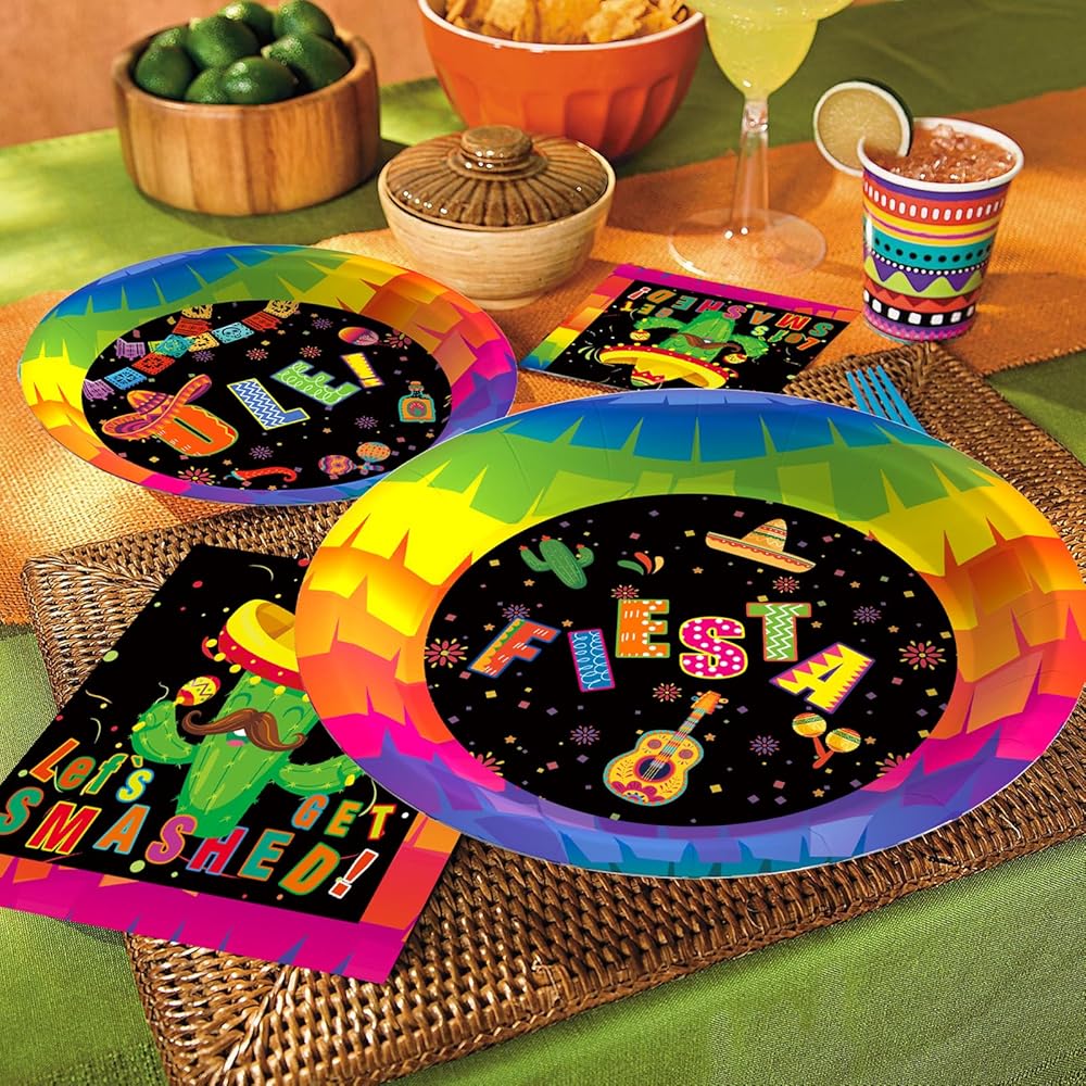أطباق ومناديل ورقية مكسيكية فييستا: مجموعة أواني طعام للاستعمال مرة واحدة لمستلزمات تزيين الحفلات التي تحمل عنوان سينكو دي مايو، تكفي 24 شخصًا