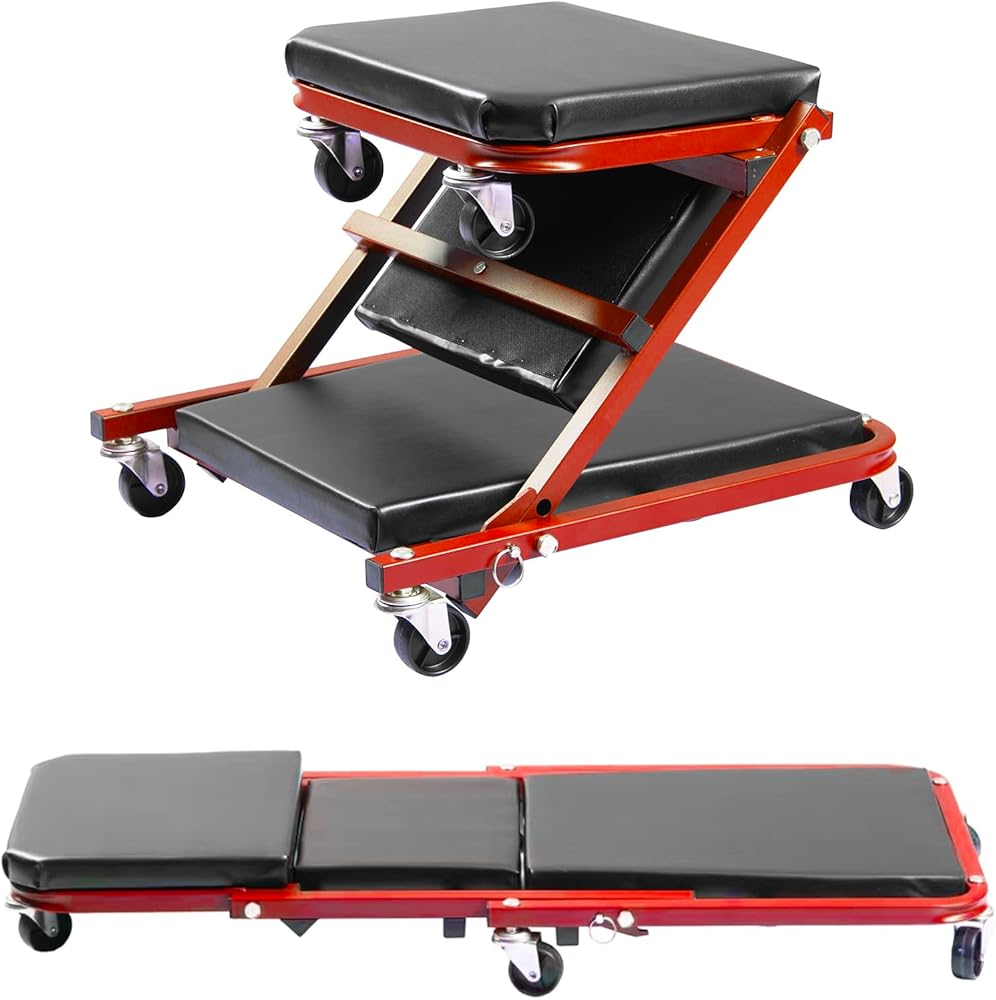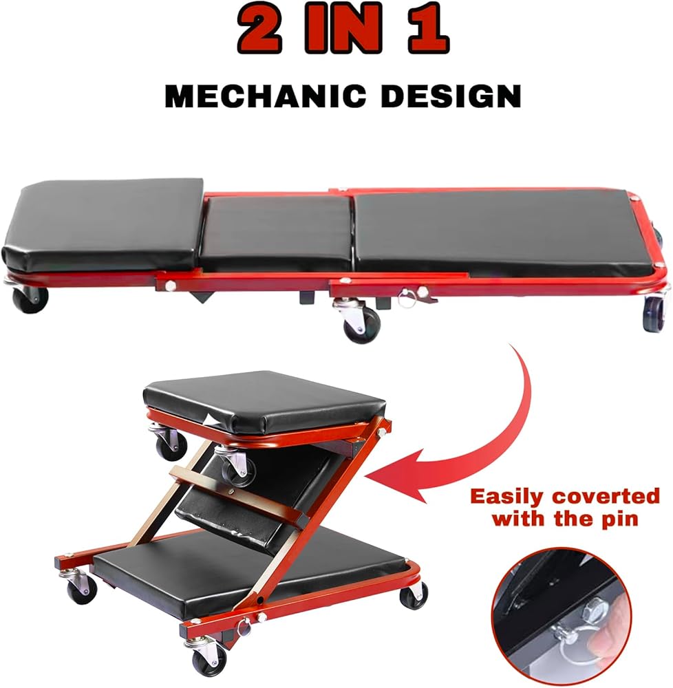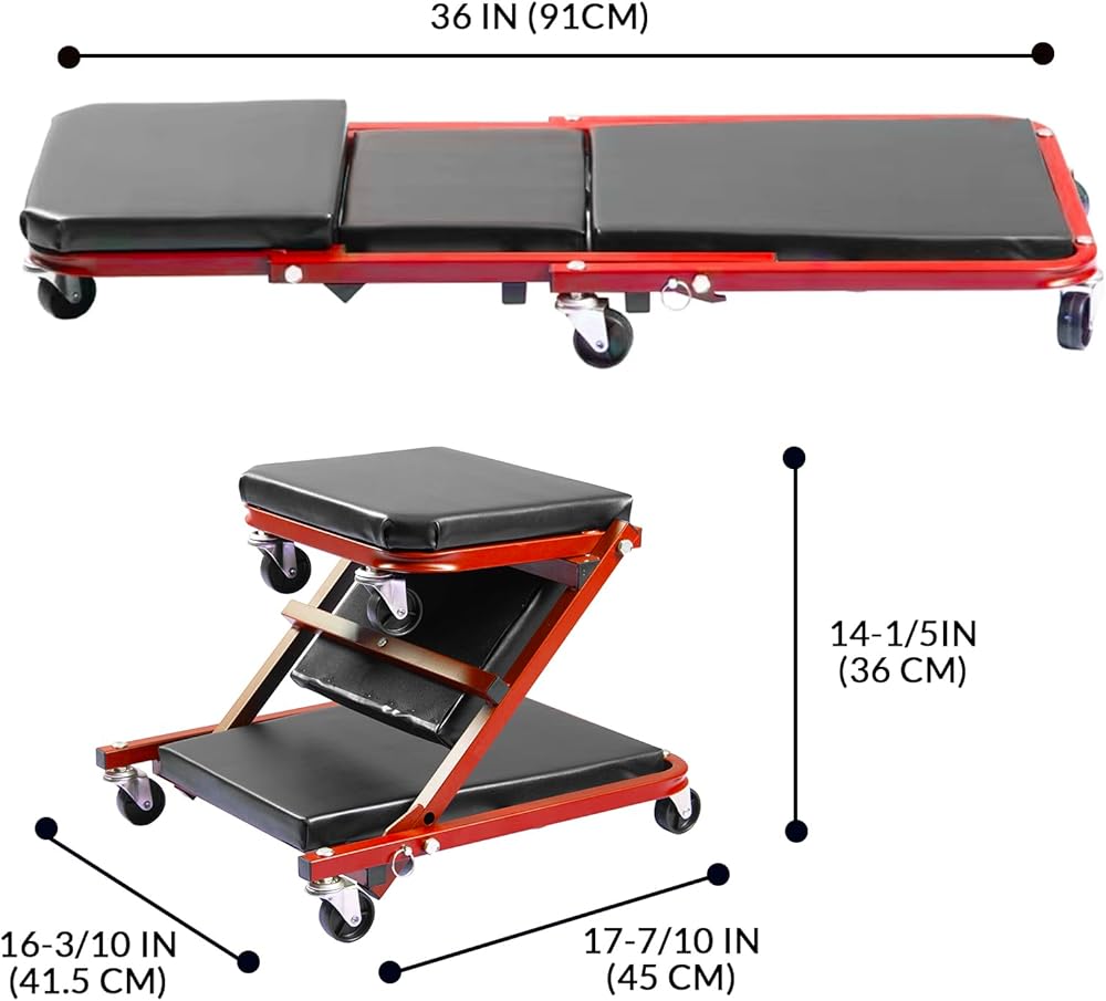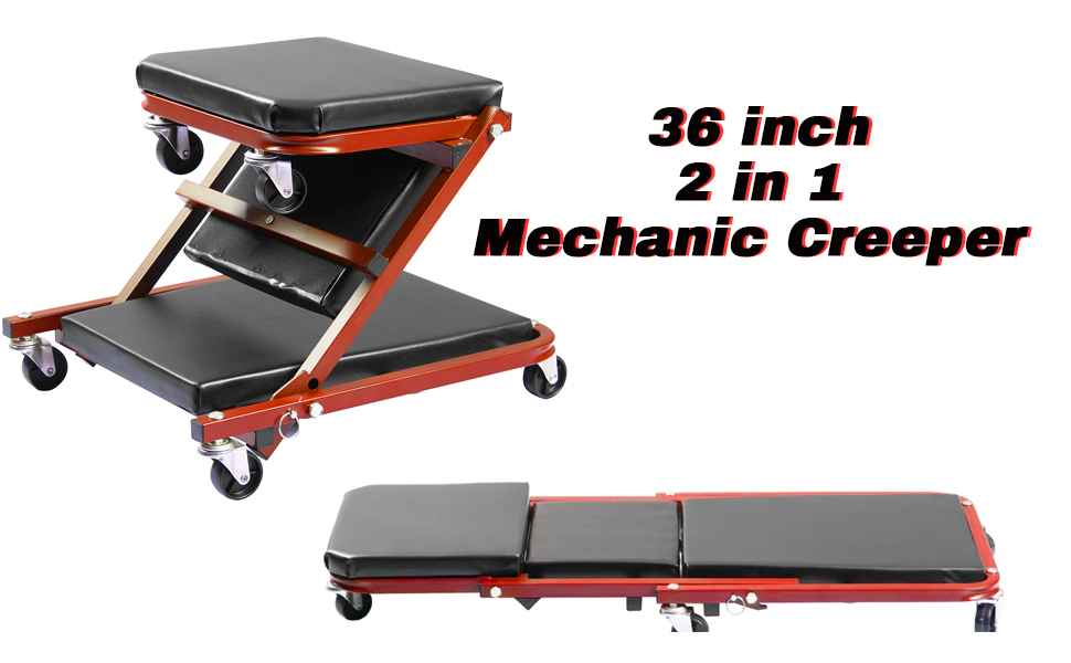 زاحف/مقعد 2 في 1 - أداة BHTOP 2 في 1 من السهل تحويلها من الزاحف إلى البراز لراحة الصيانة. الزاحف للانزلاق أسفل سيارتك بسهولة، بينما المقعد للعمل في مكان منخفض دون الانحناء، لا حاجة للاستلقاء على الأرض الباردة.