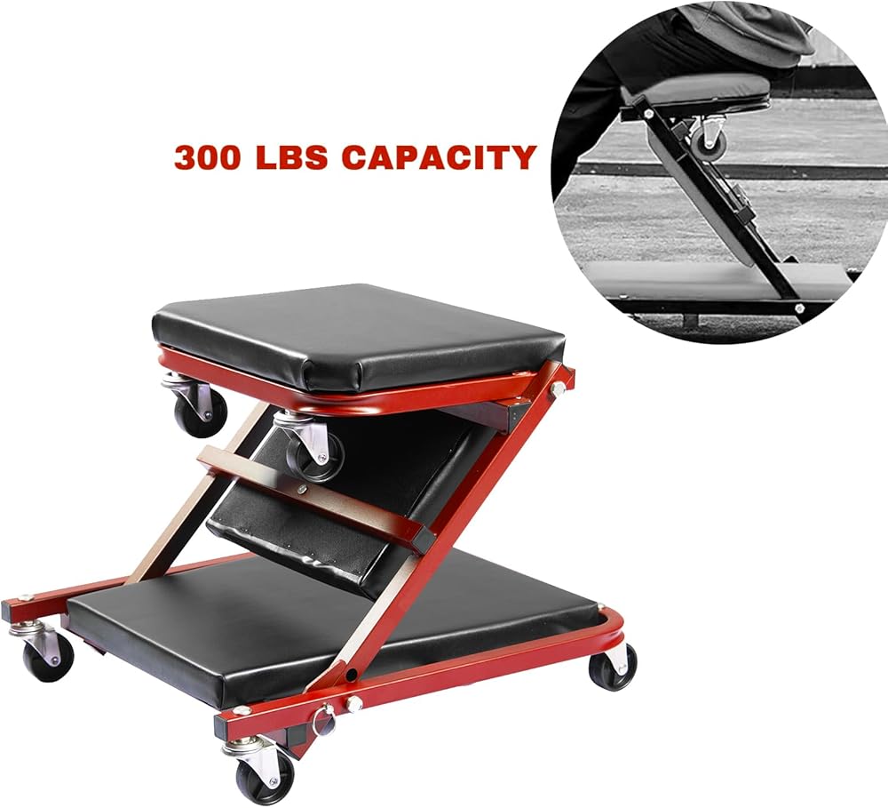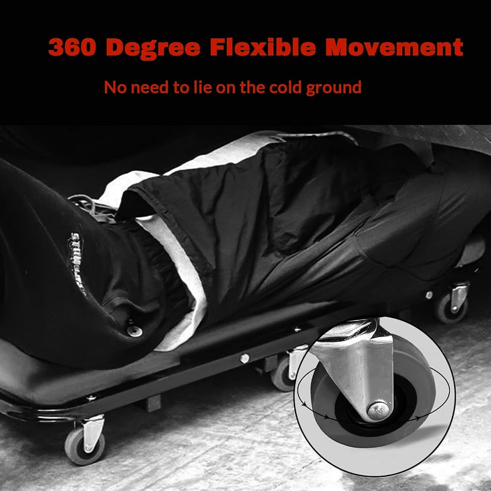 مادة فاخرة ومتينة - مقعد Z-creeper الخاص بنا مصنوع من إطار فولاذي أنبوبي قوي مقاوم للماء والصدأ ويمكنه دعم ما يصل إلى 330 رطلاً. لن يتشوه الإطار أو يتدحرج أو يميل للخلف، مما يسمح بسهولة المناورة حول سيارتك أو أسفلها.