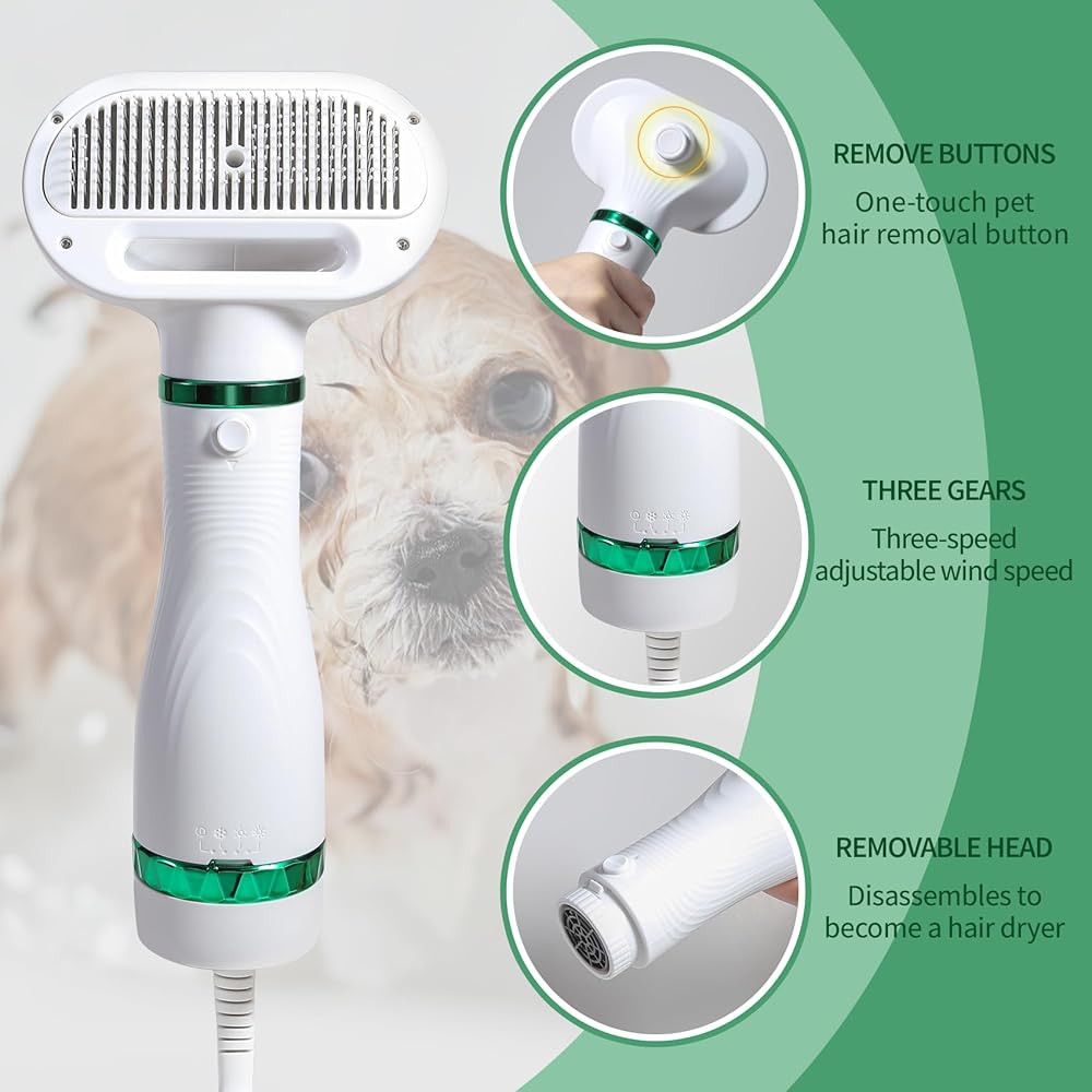 نتائج العناية الاحترافية: تعمل الشعيرات عالية الجودة للفرشاة على إزالة الشعر السائب والتشابك بلطف، مما يترك فراء حيوانك الأليف ناعمًا ولامعًا، بينما يجفف المجفف القوي فرائه بسرعة وينفشه.