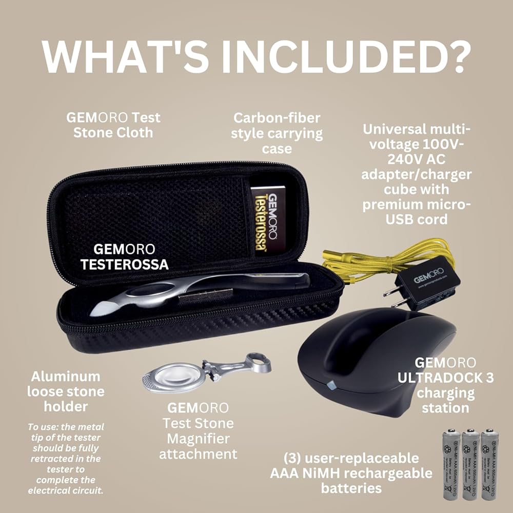 • أجهزة اختبار GEMORO: GemOro هي شركة رائدة في تصنيع أجهزة اختبار الذهب والبلاتين، بالإضافة إلى أجهزة اختبار الماس والمويسانتي والياقوت الأبيض. إنهم موثوقون من قبل المحترفين والهواة على حدٍ سواء. يشتهر مختبرو GemOro بالدقة والموثوقية وسهولة الاستخدام.
