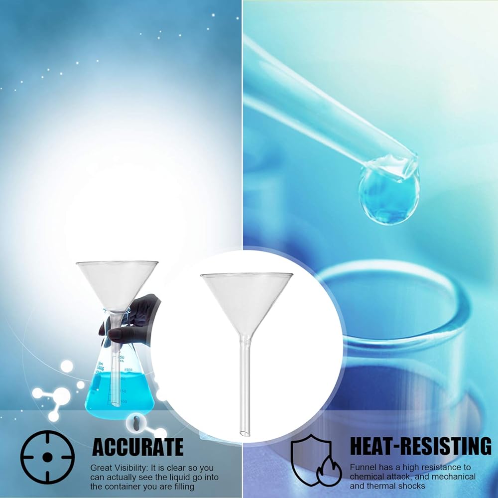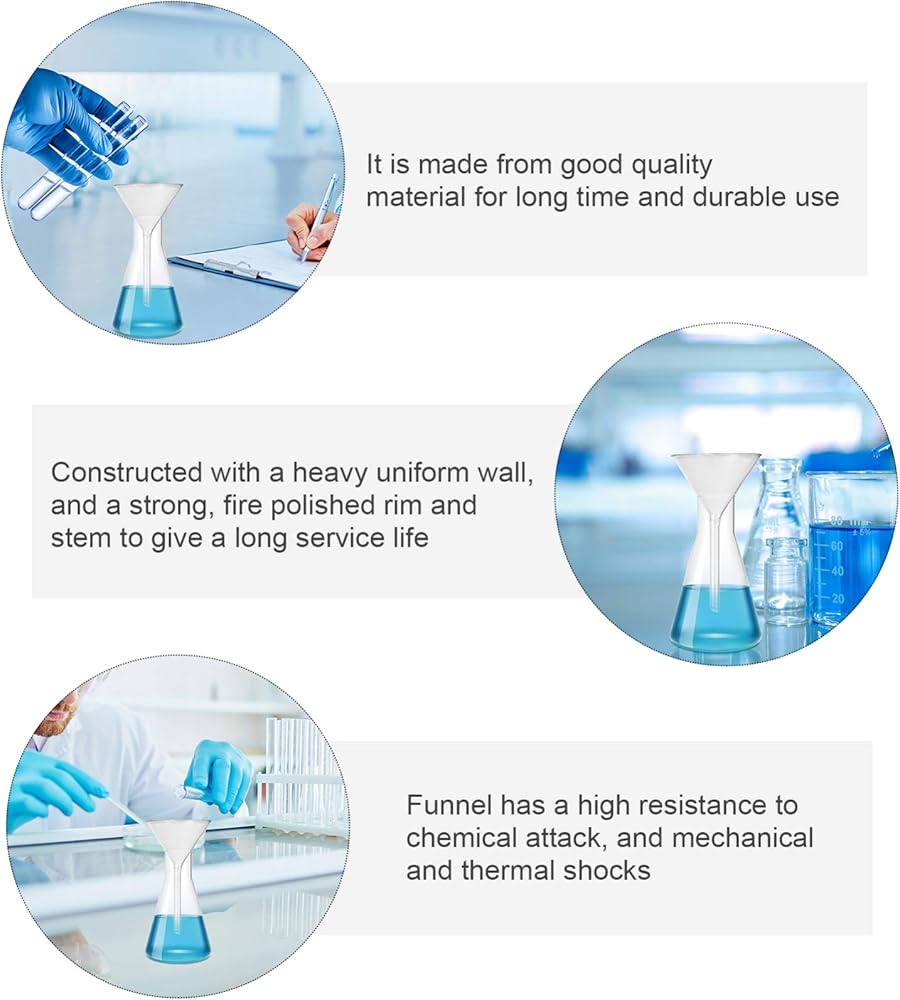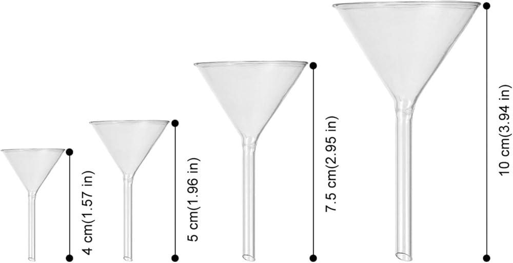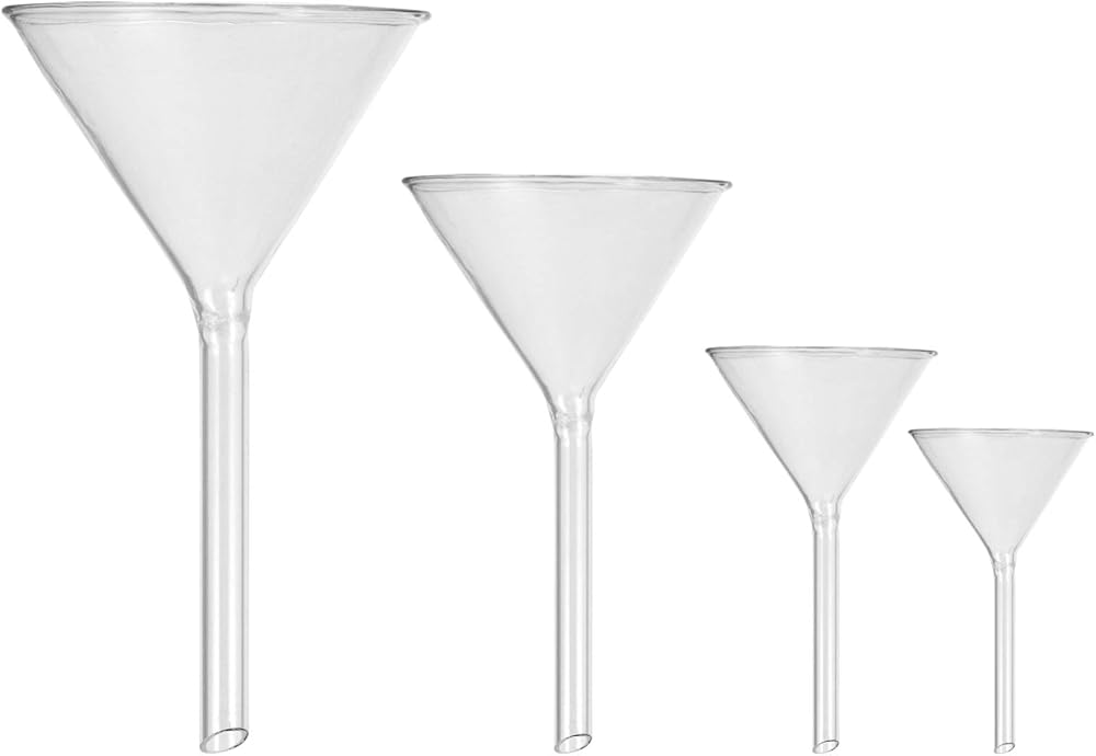قمع مسحوق الكيمياء، قمع قصير الجذع، مجموعة قمع زجاجي، أدوات زجاجية للمختبرات 45 مم، 50 مم، 75 مم، 100 مم (4 قطع) أدوات زجاجية للمختبر، قمع منفصل، أدوات زجاجية