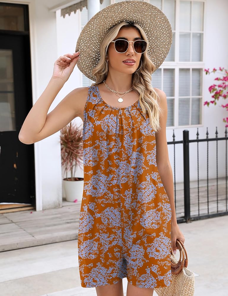 المطابقة: ثوب فضفاض للنساء 2024. الرومبير فضفاض وليس قصيرًا جدًا. ارتداء قميص بدون أكمام تحته سيبقيك منتعشًا ومرتاحًا طوال الصيف! والبذلة القصيرة بدون أكمام مثالية لتتماشى مع القمصان والقلائد والأحذية الرياضية والصنادل والكعب العالي وقبعات الشاطئ للحصول على نمط عصري في الربيع والصيف.