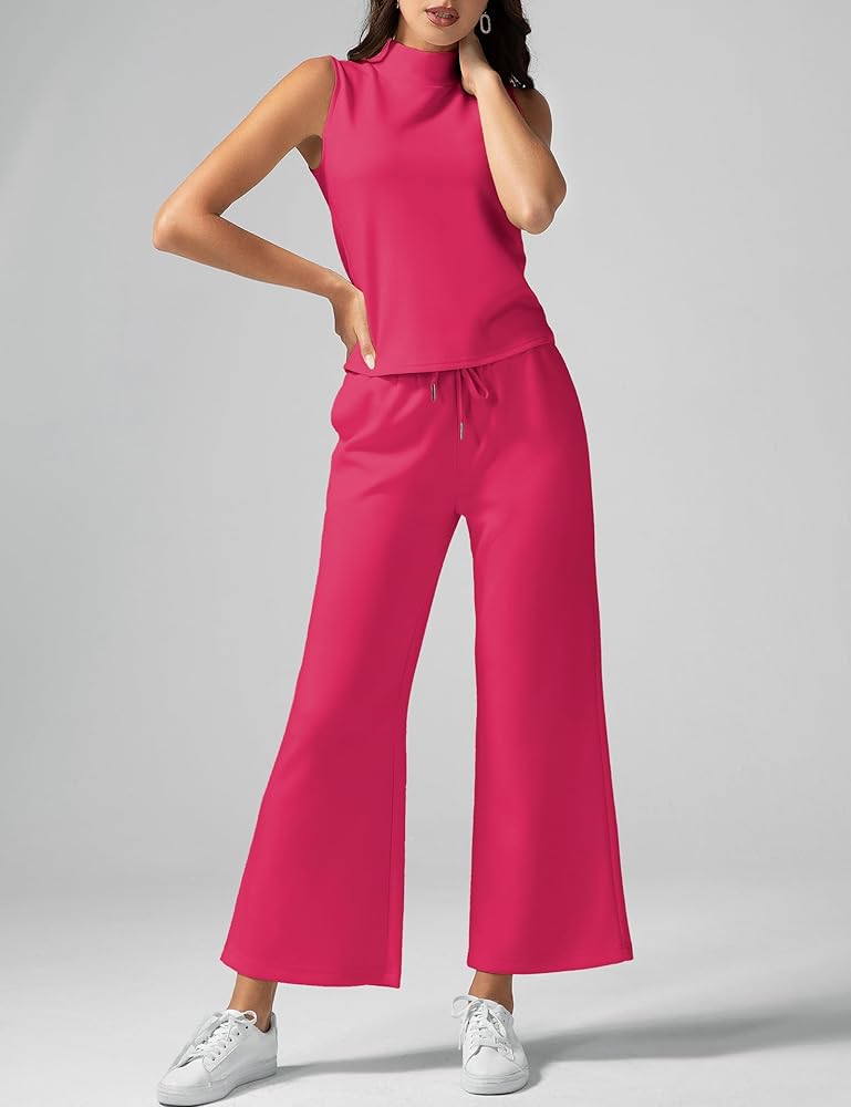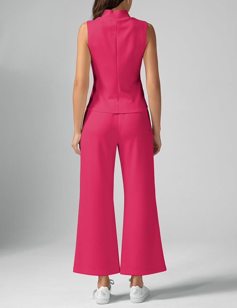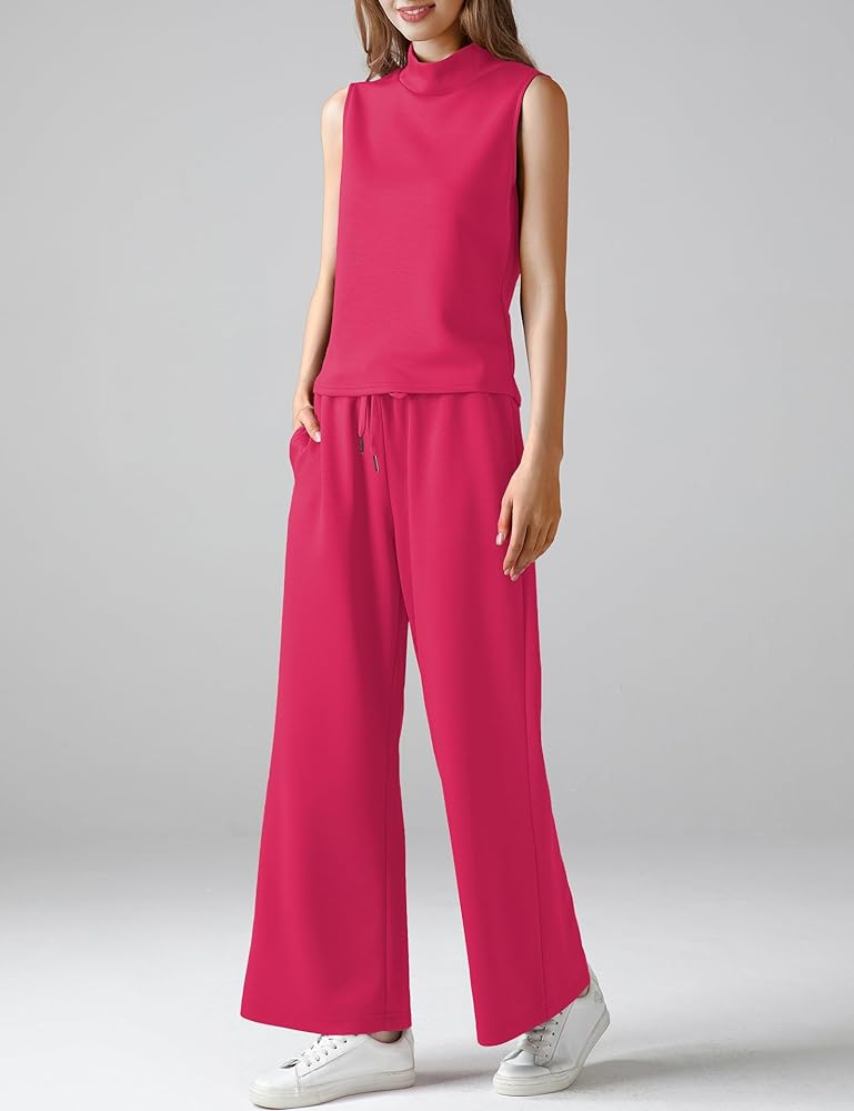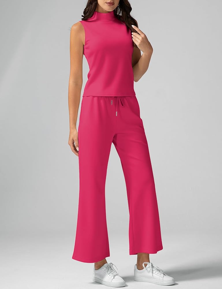 【تصميم أنيق】: طقم مريح مكون من قطعتين يتكون من قميص بدون أكمام وبنطلون واسع الساق. يتميز بقميص عصري برقبة وهمية، وسروال قصير الطول، وتصميم برباط مرن، وجيوب ذات سعة كبيرة، يمزج بشكل مثالي بين الأنماط الرياضية والترفيهية وينتقل من الملابس الأنيقة إلى الاسترخاء، مما يوفر لك مظهرًا فريدًا وعصريًا.