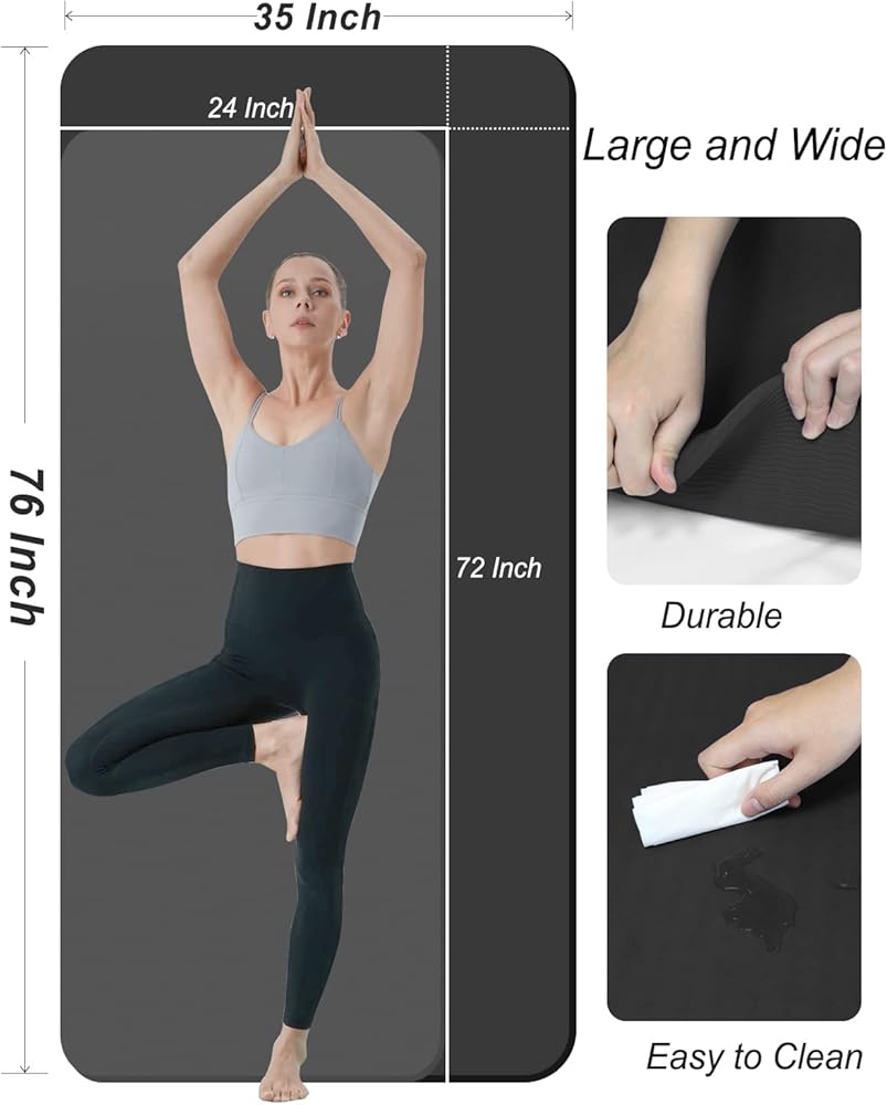 • سجادة تمرين كبيرة جدًا: 76 بوصة (195 سم) × 35 بوصة (90 سم) هي سجادة تمرين مثالية لجميع الأغراض في الاستوديو أو في المنزل. نحن نقدم هذه السجادة كبيرة الحجم خصيصًا لعملائنا الذين يحتاجون إلى مساحة أكبر لممارسة التمارين اليومية الروتينية