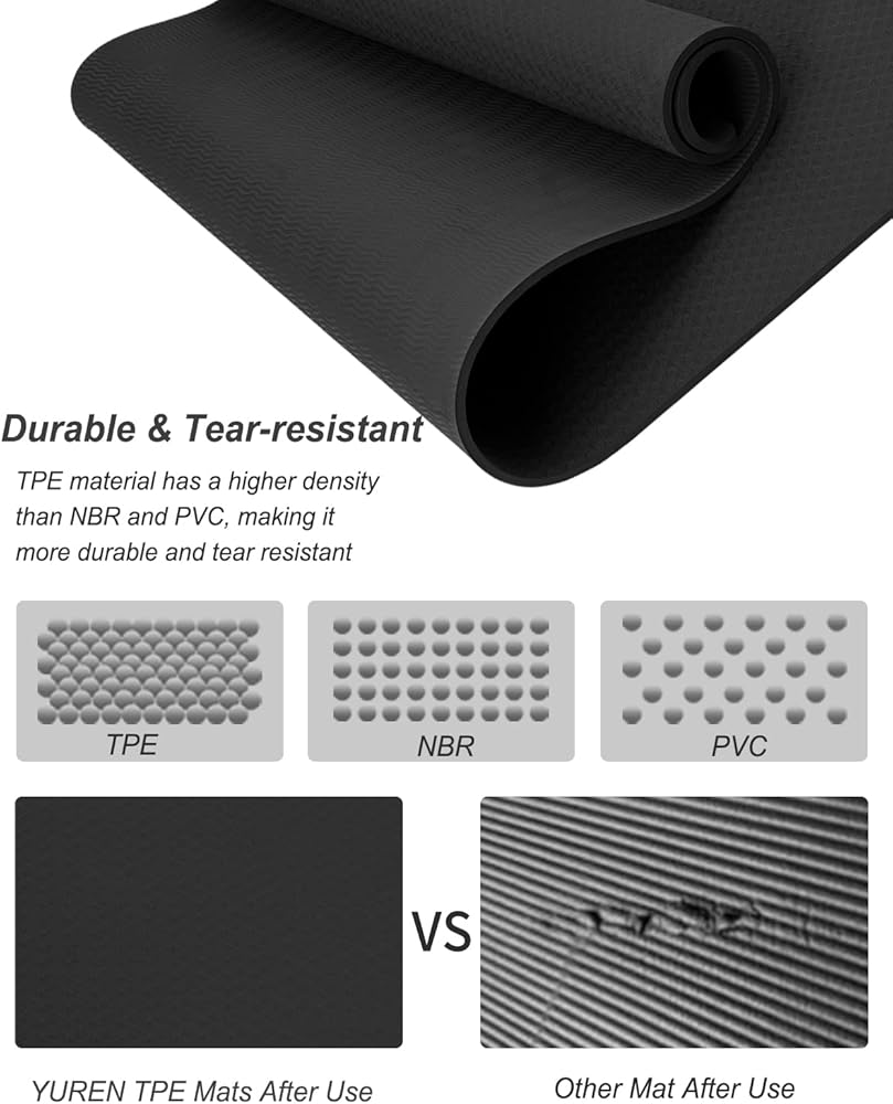 • مادة فاخرة صديقة للبيئة: TPE هو أحدث تحسين تقني لسجادات اليوغا التقليدية. هذه السجادة مصنوعة من مادة TPE المعتمدة من SGS وهي غير قابلة للانزلاق ومضادة للتمزق وسهلة التنظيف وعديمة الرائحة ومع وسادة ممتازة. إنها حقًا صديقة للبيئة وصحية