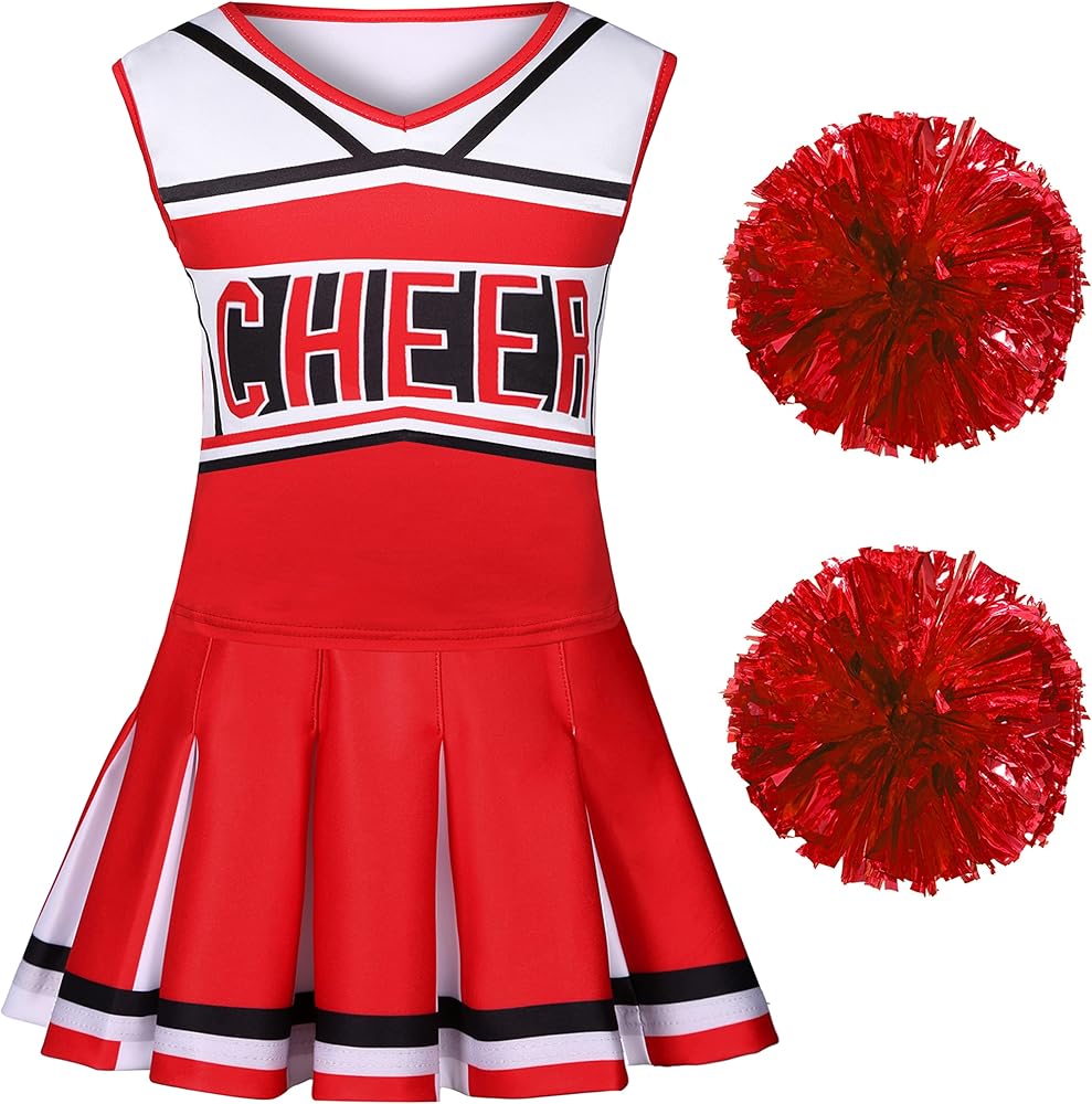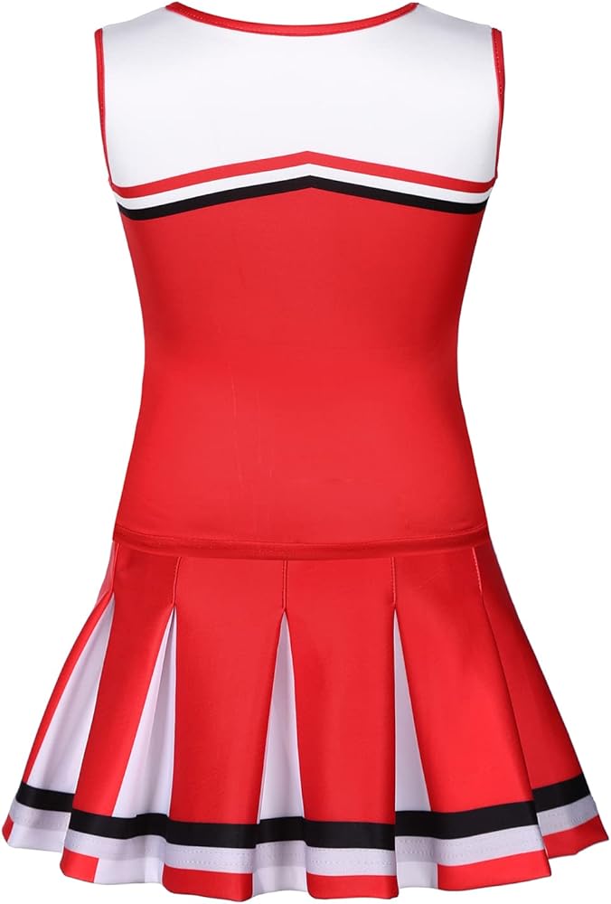 Girls Cheerleader Outfit:Your daughters will chose to be the charming leader for Halloween, Christmas, masquerade, costume party. This dress will make your daughter shine in the crowd.