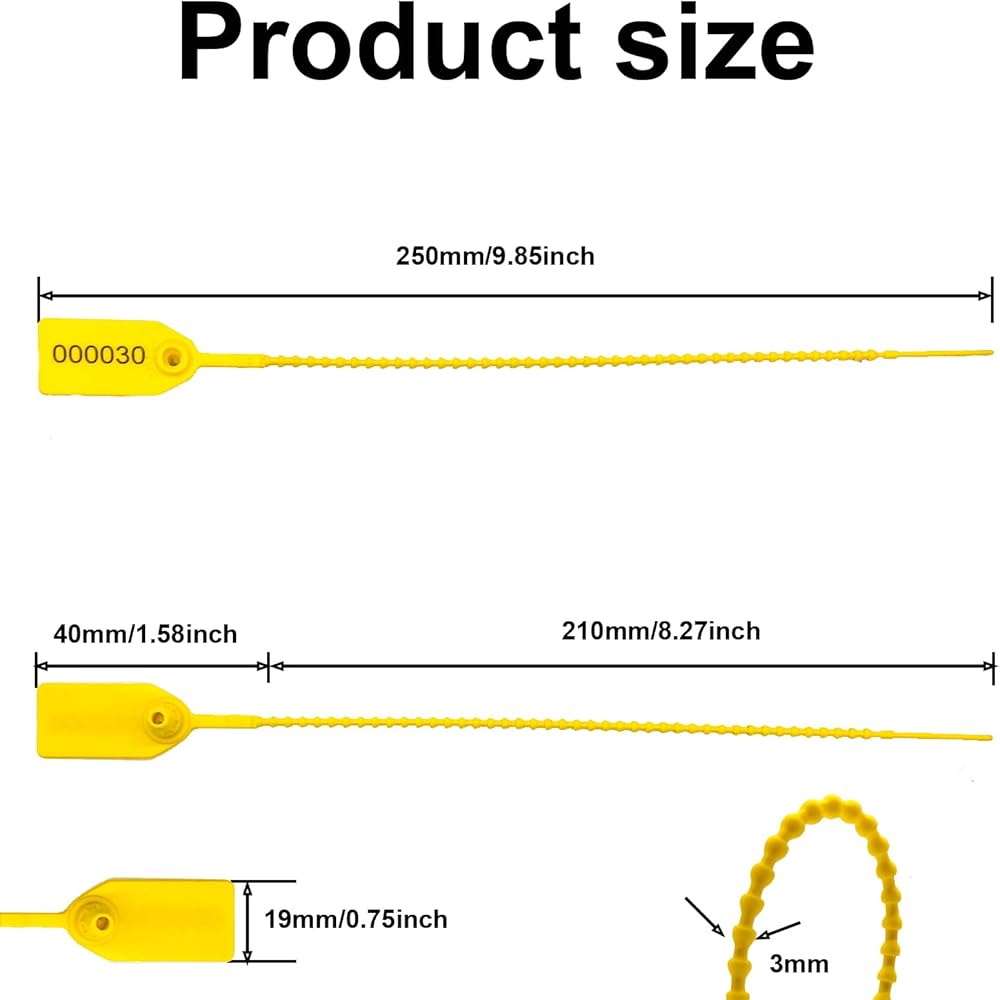 FarwenC 100 Plastic Tamper SealsYou will receive: a set of high-quality tamper-evident seals, totaling 100 pieces. FarwenC 100 Plastic Tamper Seals - Safety Numbered Zip Ties Labels, 250mm Length.