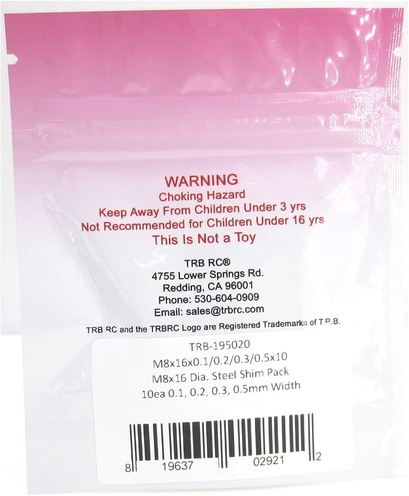TRB RC M8x16mm Dia. Steel Shim Pack 10ea 0.1, 0.2, 0.3, 0.5mm Width / Thickness.
