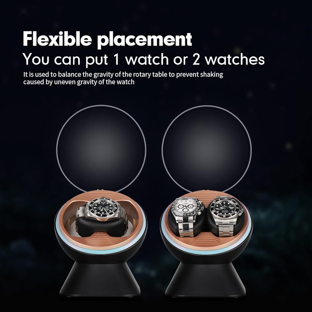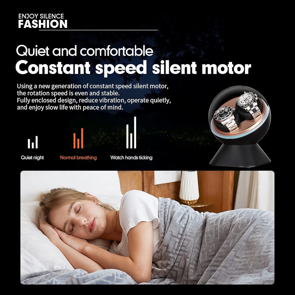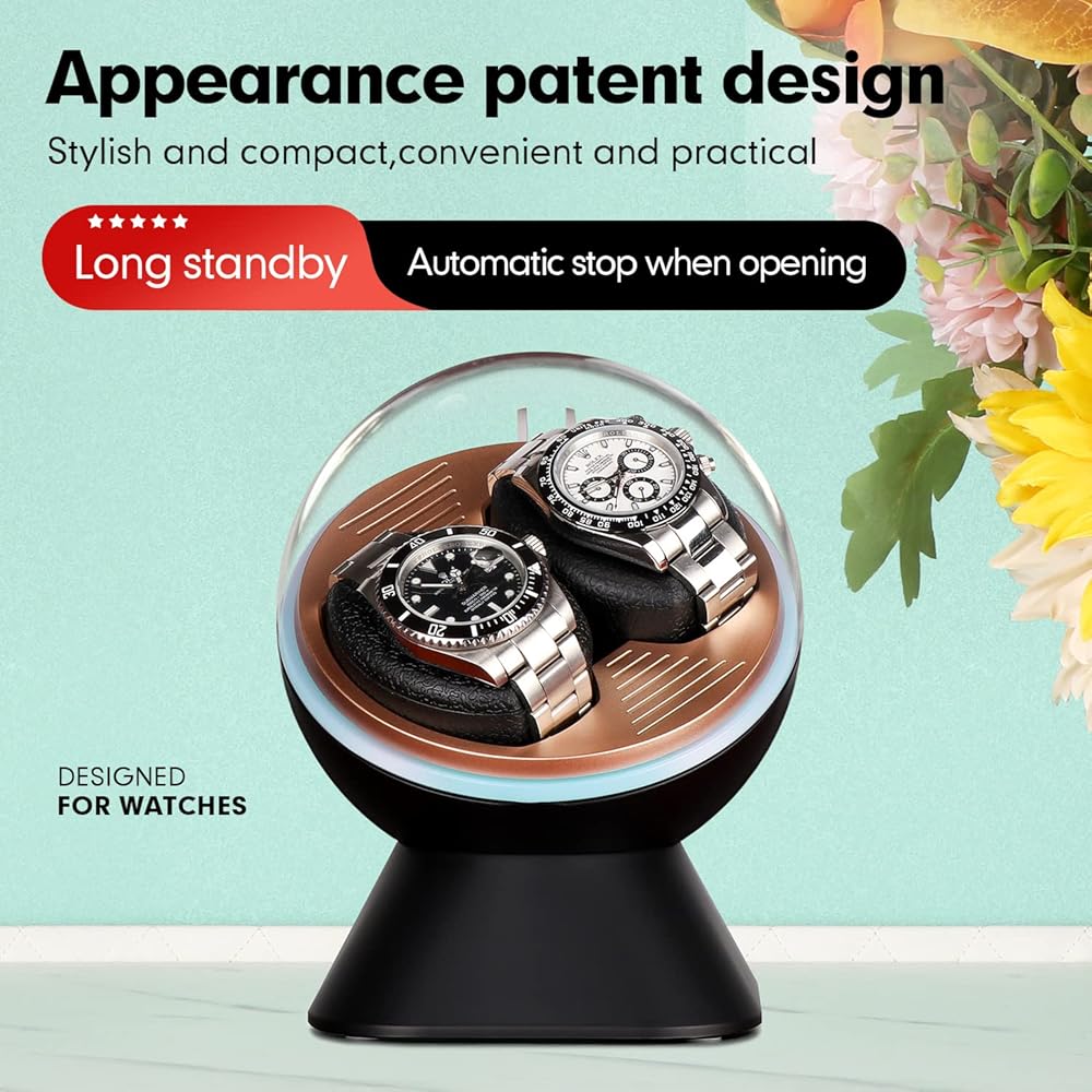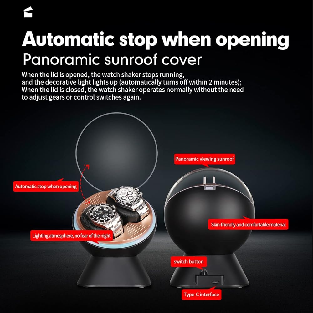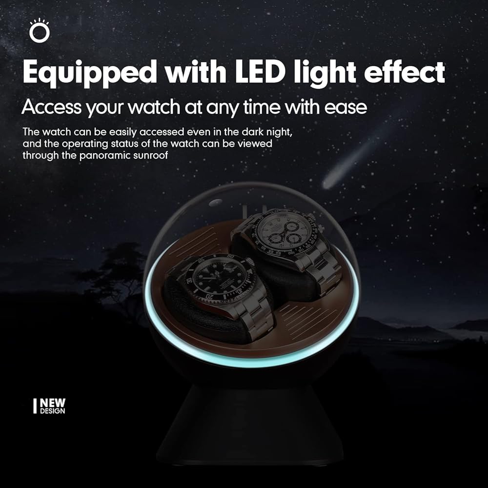 3. [تصميم الإضاءة التلقائي] يعمل تصميم الإضاءة لجهاز لف الساعة الأوتوماتيكي على تشغيل ضوء الغلاف تلقائيًا عند فتح الغطاء، ويخرج تلقائيًا بعد دقيقتين دون تعديل يدوي.