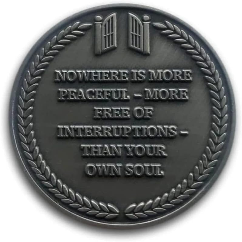 يحتوي الجزء الخلفي من العملة على اقتباس ماركوس أوريليوس "لا يوجد مكان أكثر سلامًا - أكثر حرية من الانقطاعات - من روحك." إنه يشير إلى مكان القوة العميقة داخل نفسك.