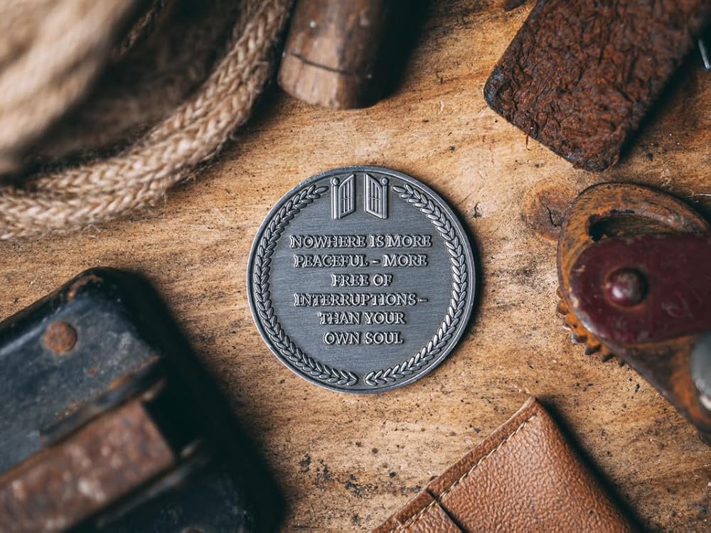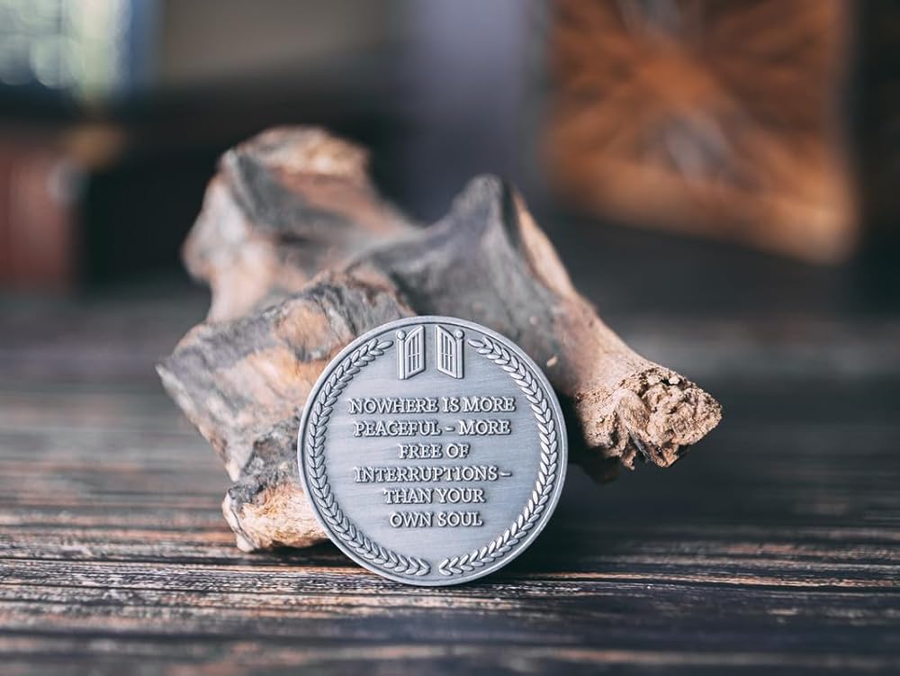 تم تصميم العملة لتأخذها معك أينما ذهبت. يمكن استخدامه للمساعدة أثناء جلسات يومياتك الرواقية أو تأملاتك أو أخذه معك عندما تحتاج إلى الشجاعة.