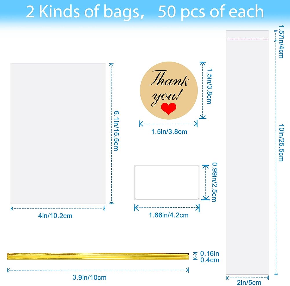 ❤المواصفات: تتضمن مجموعة أكياس السيلوفان الشفافة الخاصة بنا 100 قطعة من أكياس البولي بروبيلين بمقاسين مختلفين: 50 قطعة من أكياس حلوى السيلوفان المسطحة مقاس 4 × 6 بوصة، و50 قطعة من أكياس قضبان البريتزل مقاس 2 × 10 بوصة و50 ربطة عنق ملتوية، و24 قطعة ذاتية فارغة ورق ملصقات لاصق و24 قطعة من ملصقات الشكر. أكياس السيلوفان البلاستيكية الشفافة ليست فقط مناسبة للتخزين ولكنها سهلة الاستخدام أيضًا.