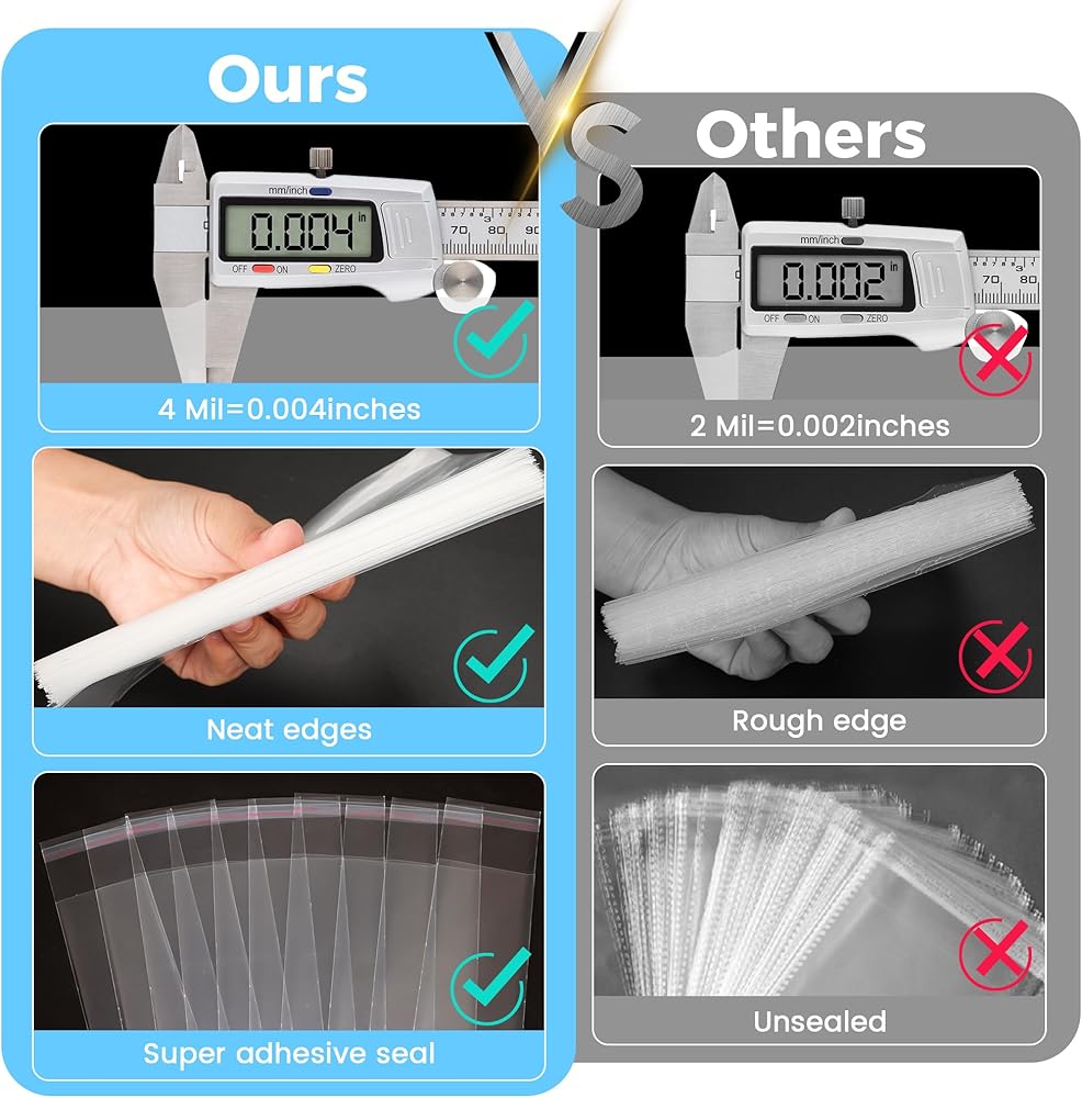 ❤مادة آمنة: أكياس السيلوفان الشفافة مصنوعة بنسبة 100% من البولي بروبيلين الموجه الجديد (OPP)، أكياس السيلوفان شفافة ومتينة وآمنة من أكياس بلاستيك البولي بروبيلين. يمكن لأكياس OPP Poly حماية المحتويات، وهي خيار رائع لتعبئة جميع أنواع العناصر. حقائب البوليستر ضرورية للحفلات والمنزل والمطبخ.