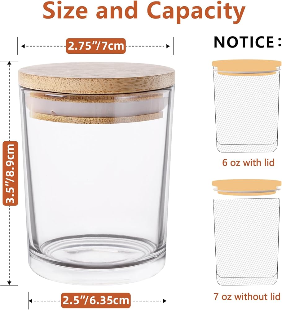 15 عبوة من برطمانات الشموع سعة 7 أونصة لصنع الشموع، برطمانات شموع زجاجية سميكة مع غطاء من الخيزران، مجموعات صنع الشموع برطمانات شموع فارغة، أوعية شموع كبيرة مع أغطية، علبة شموع قابلة لإعادة الاستخدام. (شفاف...