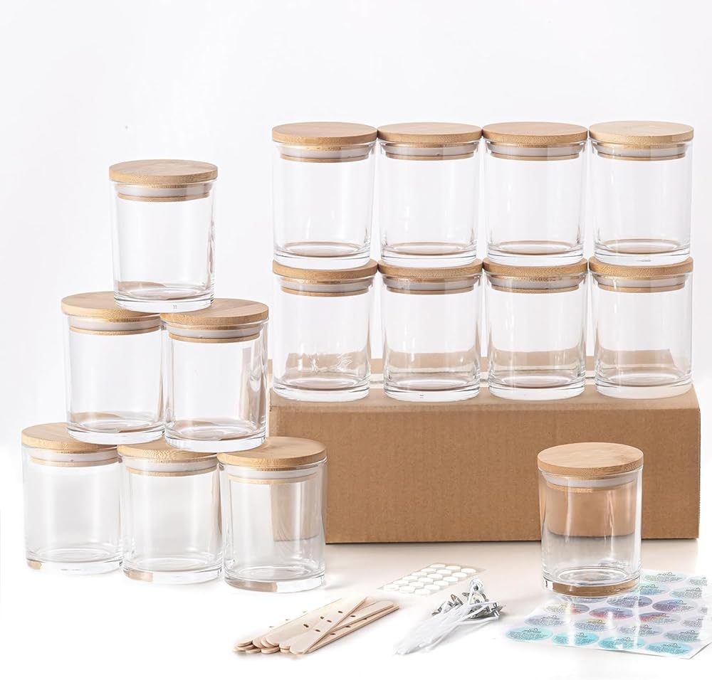 محتوى العبوة: 15 قطعة من برطمانات الشموع الزجاجية بوزن 7oz (أسود مطفي)، 15 حامل فتيل شموع خشبي، 15 فتيل شمعة، 24 ملصق تحذير شمعة، 18 نقطة صمغ فتيل شمعة. إذا كنت مبتدئًا في صناعة الشموع، فإن مجموعة برطمانات الشموع هذه ستساعدك بالتأكيد مفيدة لك، وإذا كنت صانع شموع ذو خبرة، فإن هذه الملحقات ستمنحك أيضًا بعض المساعدة.