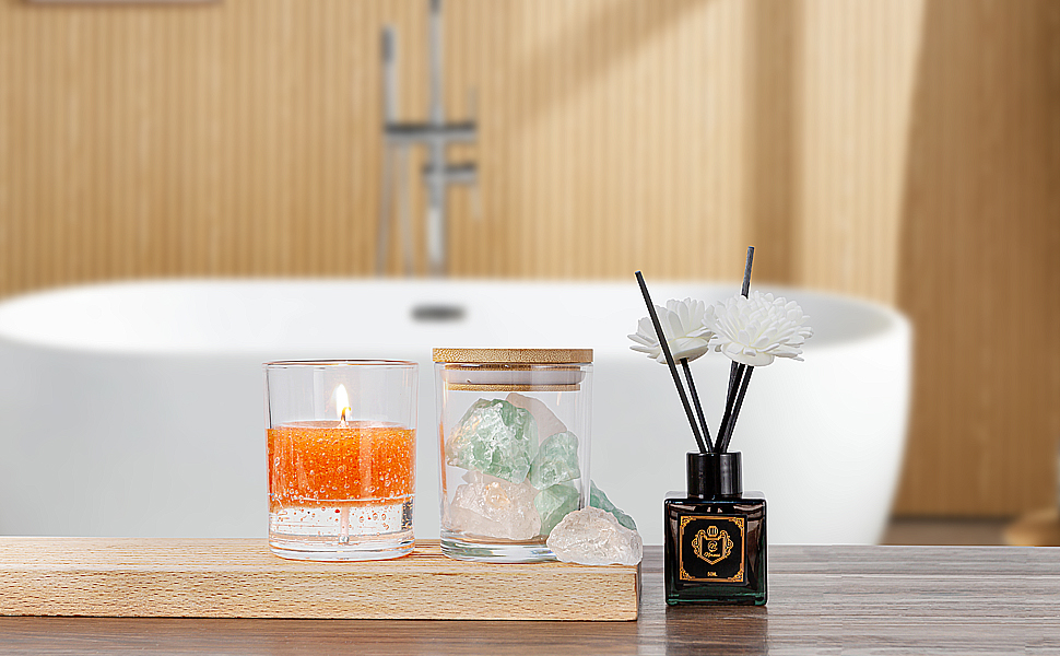 المواد: أوعية الشموع مصنوعة من زجاج سميك، مقاومة للحرارة، مقاومة للانفجار، خالية من الرصاص، غير سامة، قابلة لإعادة الاستخدام وأكثر أمانًا من البرطمانات البلاستيكية. الغطاء مصنوع من الخيزران الطبيعي والخالي من التلوث، مع قفل لمنع الشمعة من ملامسة الهواء والحفاظ على العطر.