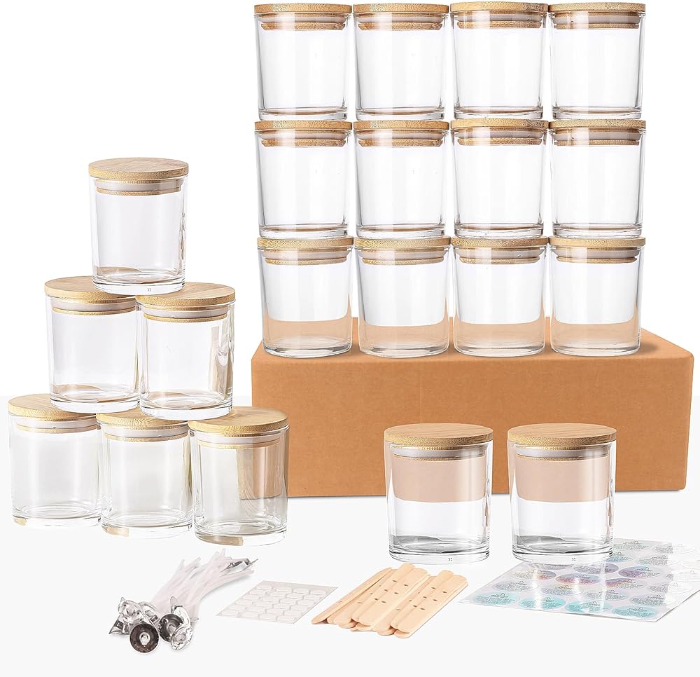 محتوى العبوة: 20 قطعة من برطمانات الشموع الزجاجية سعة 7 أونصة (شفافة)، 20 حامل فتيل شموع خشبي، 20 فتيل شمعة، 24 ملصق تحذير للشموع، 30 نقطة صمغ فتيل الشموع. إذا كنت مبتدئًا في صناعة الشموع، فإن مجموعة برطمانات الشموع هذه ستأتي بالتأكيد في متناول يدك، وإذا كنت صانع شموع ذو خبرة، فإن هذه الملحقات ستمنحك أيضًا بعض المساعدة.