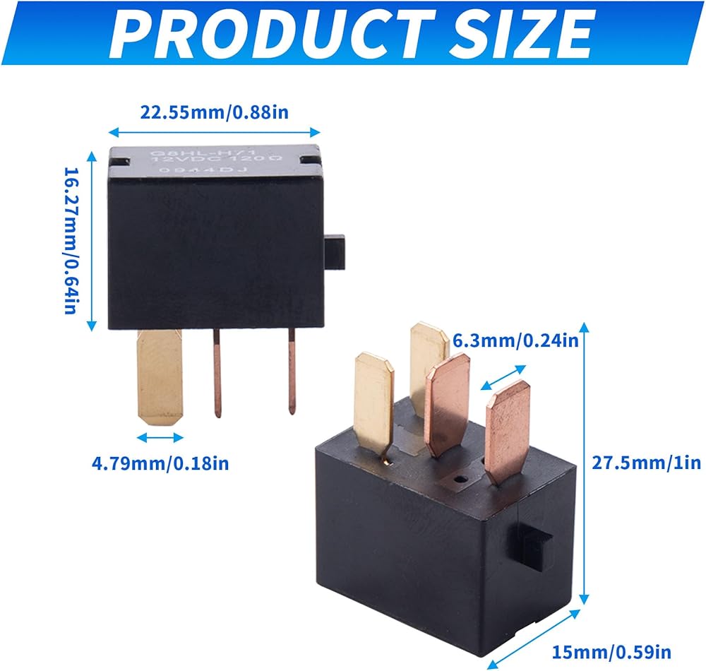 مواصفات المنتج: 125 مللي أمبير، جهد الملف: 12 فولت تيار مستمر، نموذج الاتصال: SPDT (1 نموذج C)، قيمة الاتصال المقدرة (التيار): 35 أمبير، طاقة الملف: 1.7 وات.