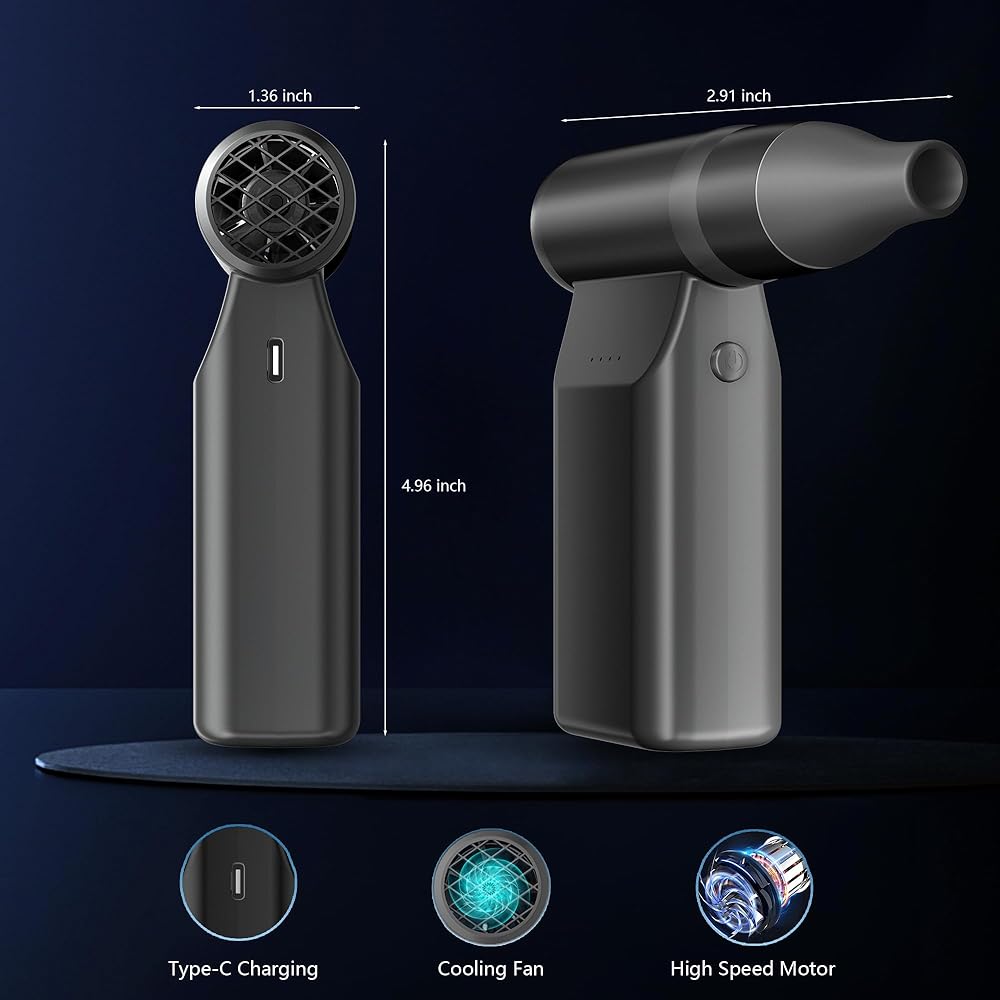 مروحة توربو منفاخ الهواء، 86000 دورة في الدقيقة، مروحة جيب صغيرة محمولة قابلة لإعادة الشحن عبر USB تعمل بالبطارية لتنظيف لوحة مفاتيح الكمبيوتر، وتجفيف الشعر، والتخييم، وفي الهواء الطلق، والسفر (رمادي)