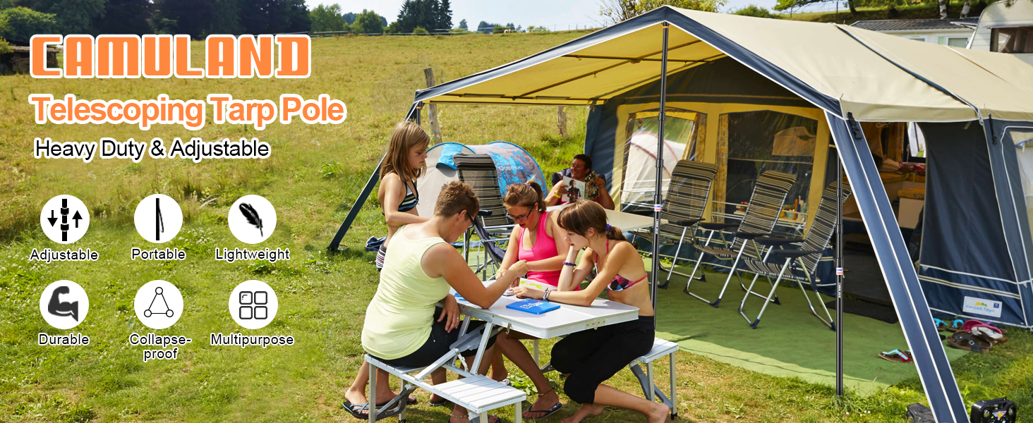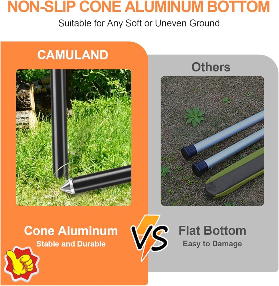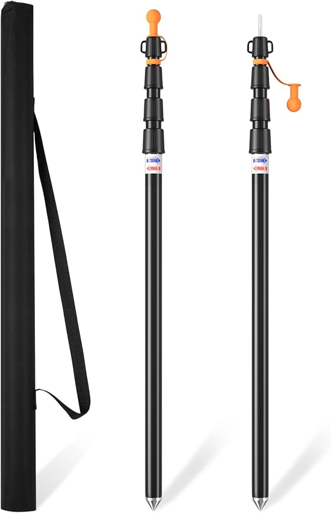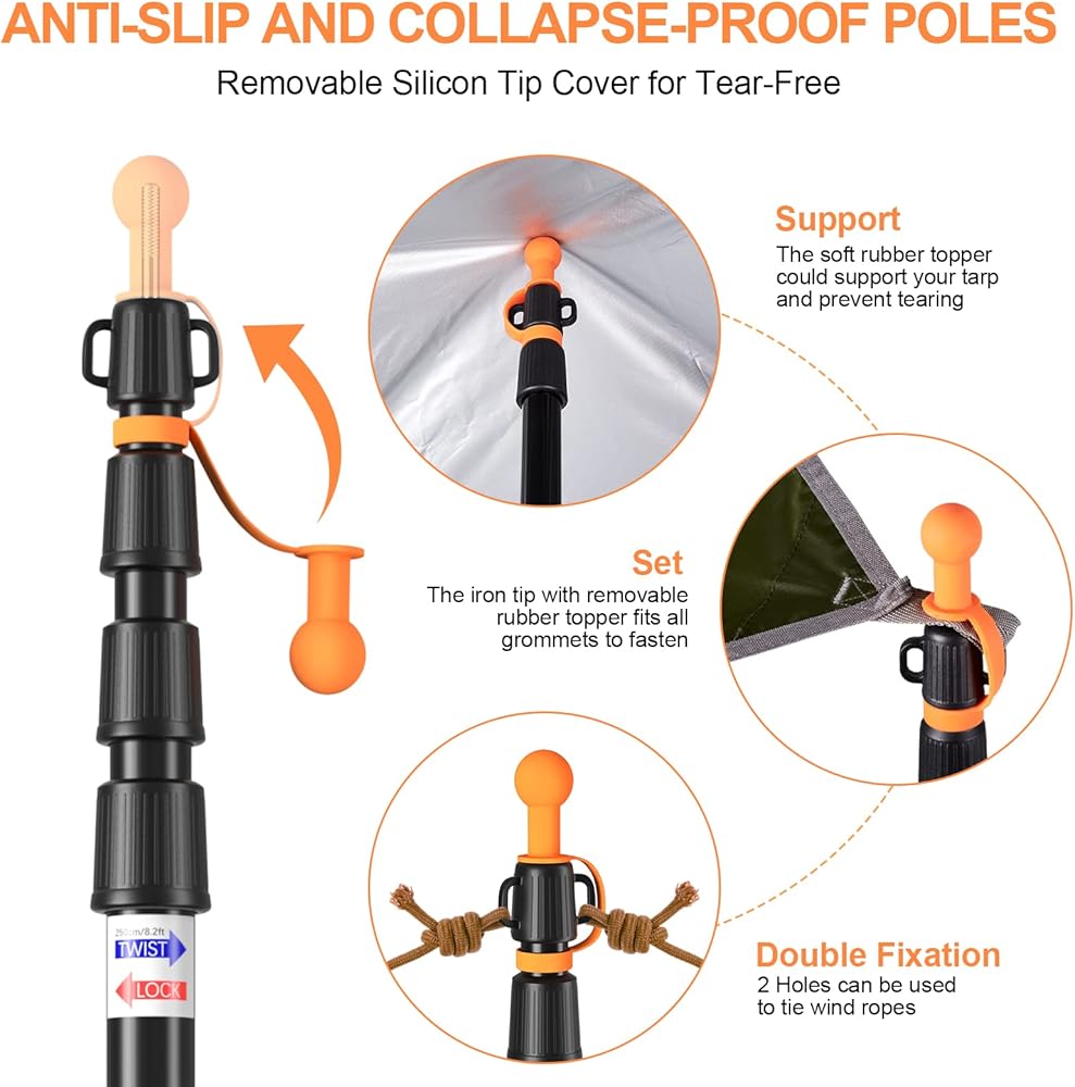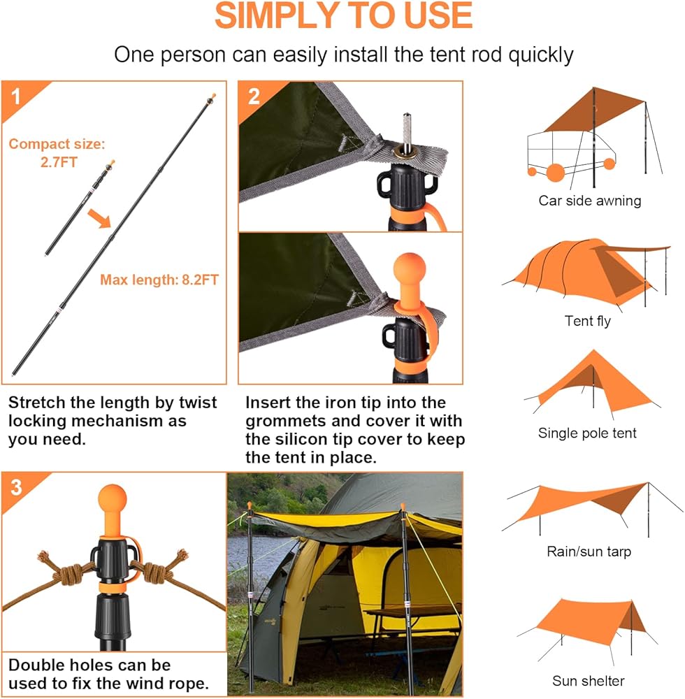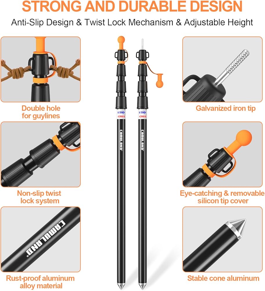 تصميم سهل الاستخدام: يساعد الدبوس العلوي المصنوع من الحديد المجلفن المصمم بشكل فريد مع غطاء سيليكون برتقالي ساطع على منع الثقب عند دعم النسيج المقاوم للماء/مركز القماش. بالإضافة إلى ذلك، فإن أقطابنا التلسكوبية القابلة للتعديل مناسبة لجميع الحلقات.