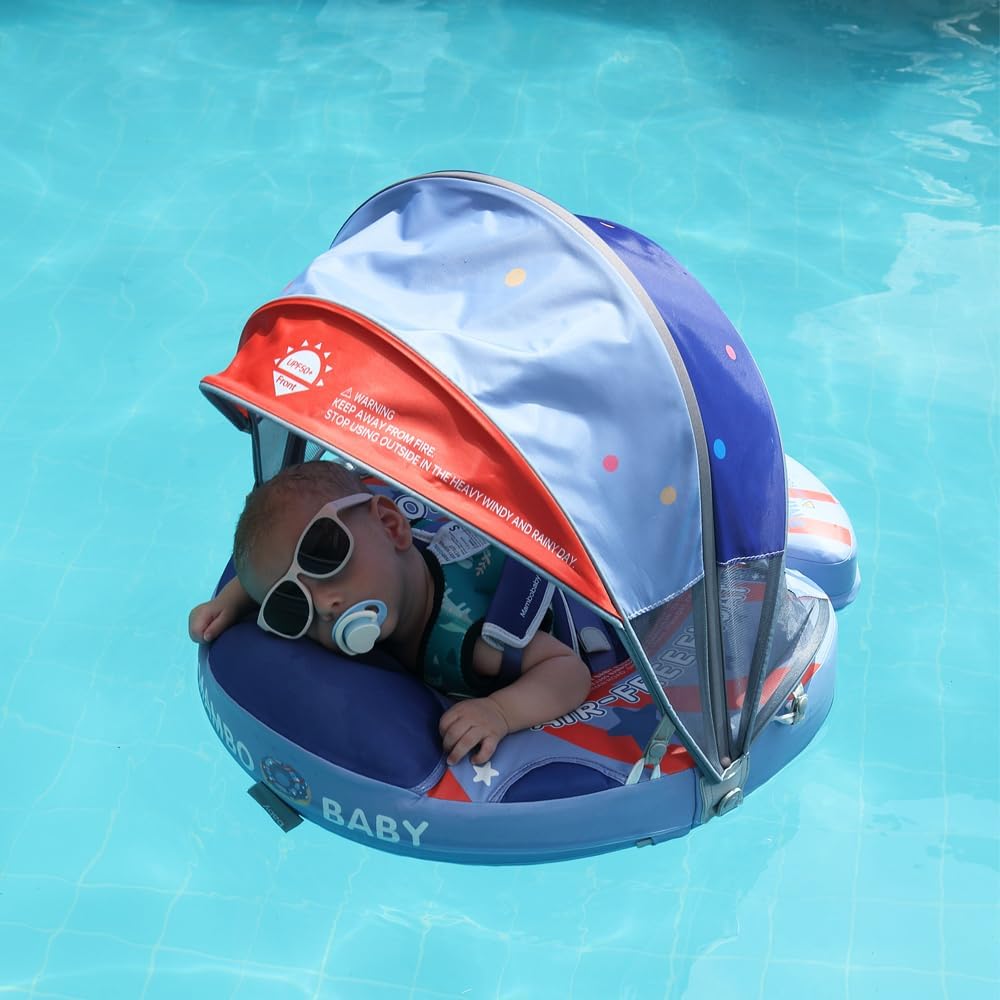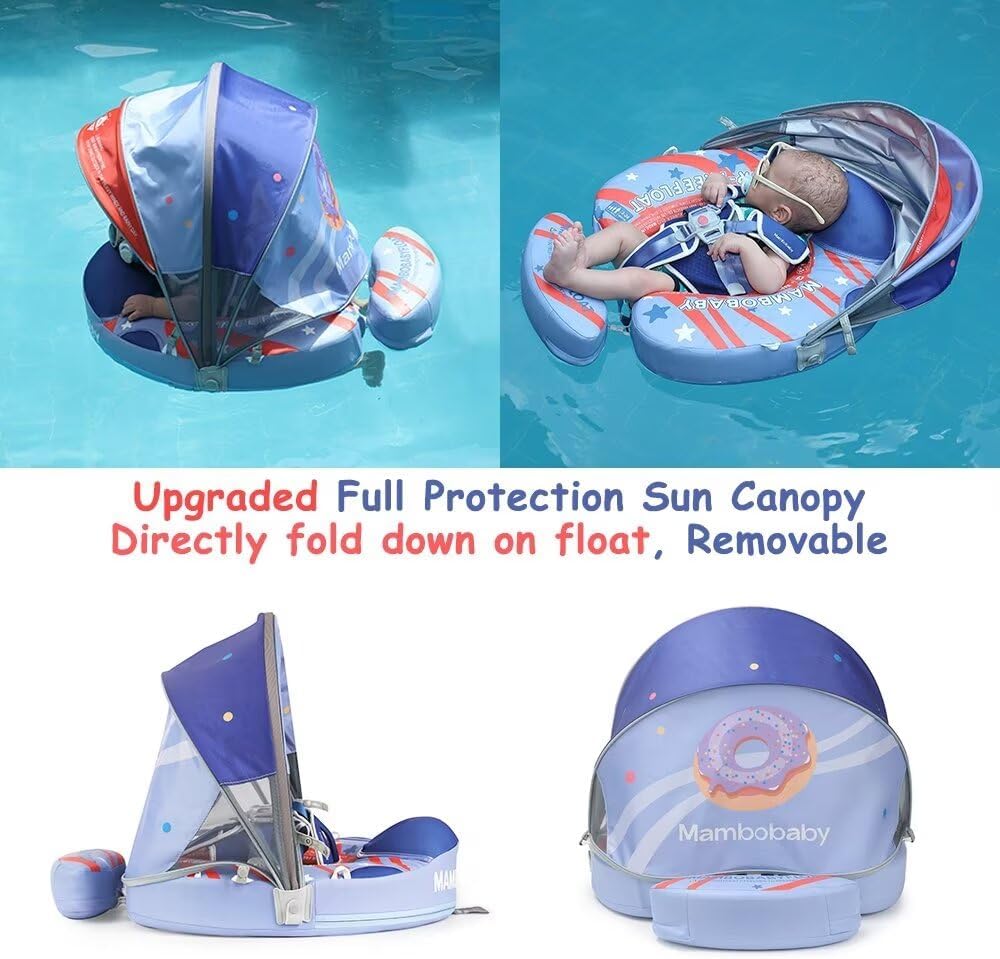 أحدث عوامة للأطفال من مامبوبيبي، عوامة غير قابلة للنفخ لحمام السباحة مع مظلة، عوامات سباحة مطورة للأطفال الرضع، حلقة عوامة مائية للأطفال من عمر 3 إلى 24 شهرًا
