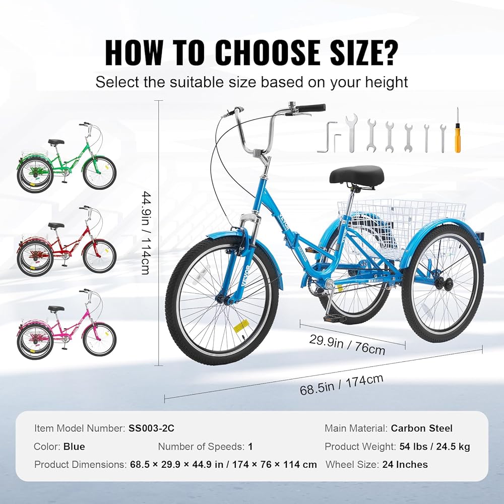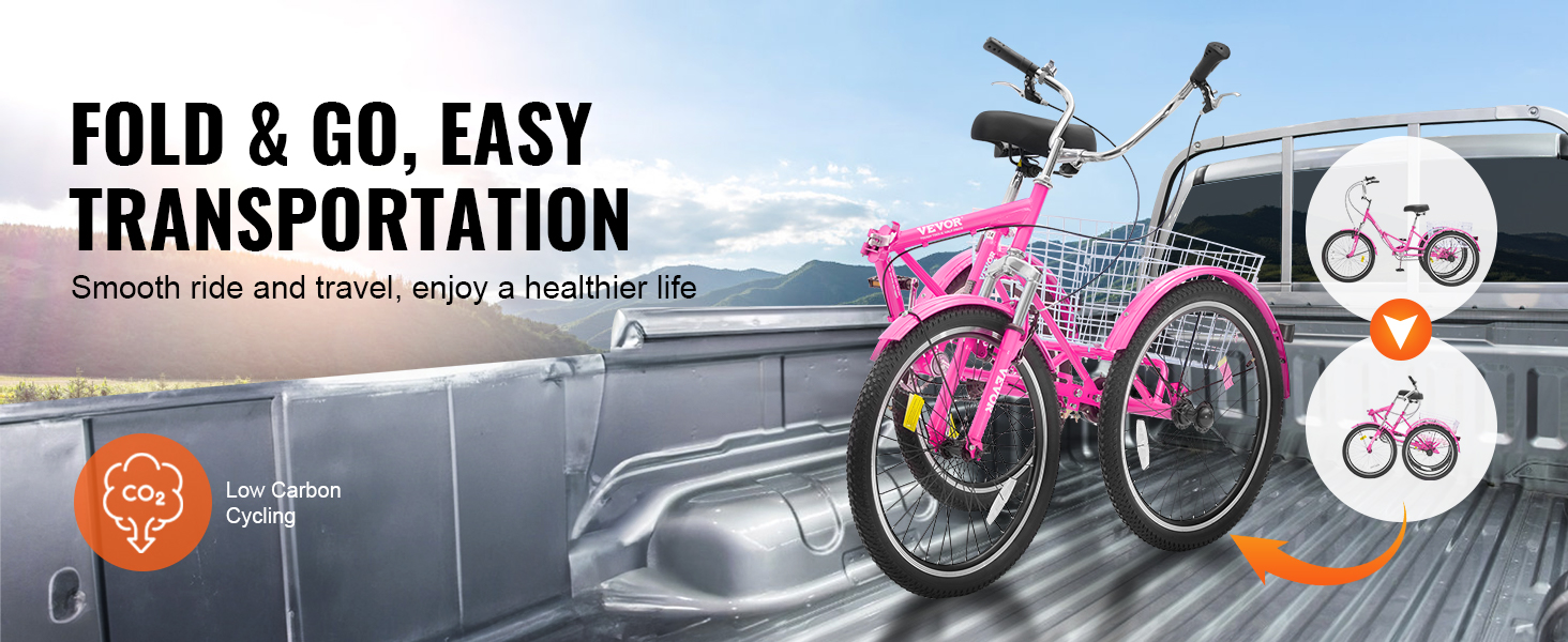 قم بالطي والذهاب إلى أي مكان: انطلق إلى الشوارع بسهولة مع دراجة ثلاثية العجلات قابلة للطي للبالغين من VEVOR. قابلة للطي لسهولة التخزين والنقل، فهي رفيقك المثالي للتنقل أو التسوق أو المرح في الهواء الطلق. مع إطار مثلث ثابت وسلة واسعة تدعم ما يصل إلى 265 رطلاً، فهي جاهزة لأي مغامرة.