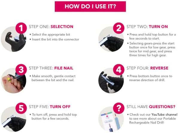 ضوء دقيق مدمج. لا يسخن بشكل زائد. وظائف أمامية وعكسية. سرعة عالية + اهتزازات منخفضة. للأظافر الصناعية والطبيعية.