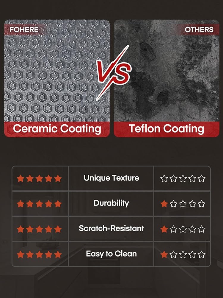👍(طلاء سيراميك غير لاصق صالح للطعام) بالمقارنة مع الطلاءات الأخرى مثل التيفلون، يستخدم وعاء فوهير الكهربائي طلاء سيراميك صالح للطعام، وهو أكثر أمانًا وصحة واستقرارًا في درجات الحرارة العالية. علاوة على ذلك، فهو متين ومقاوم للخدش ومقاوم للاهتراء، مما يمنع الطعام من الالتصاق ويجعل الوعاء نظيفًا مثل النسيم.