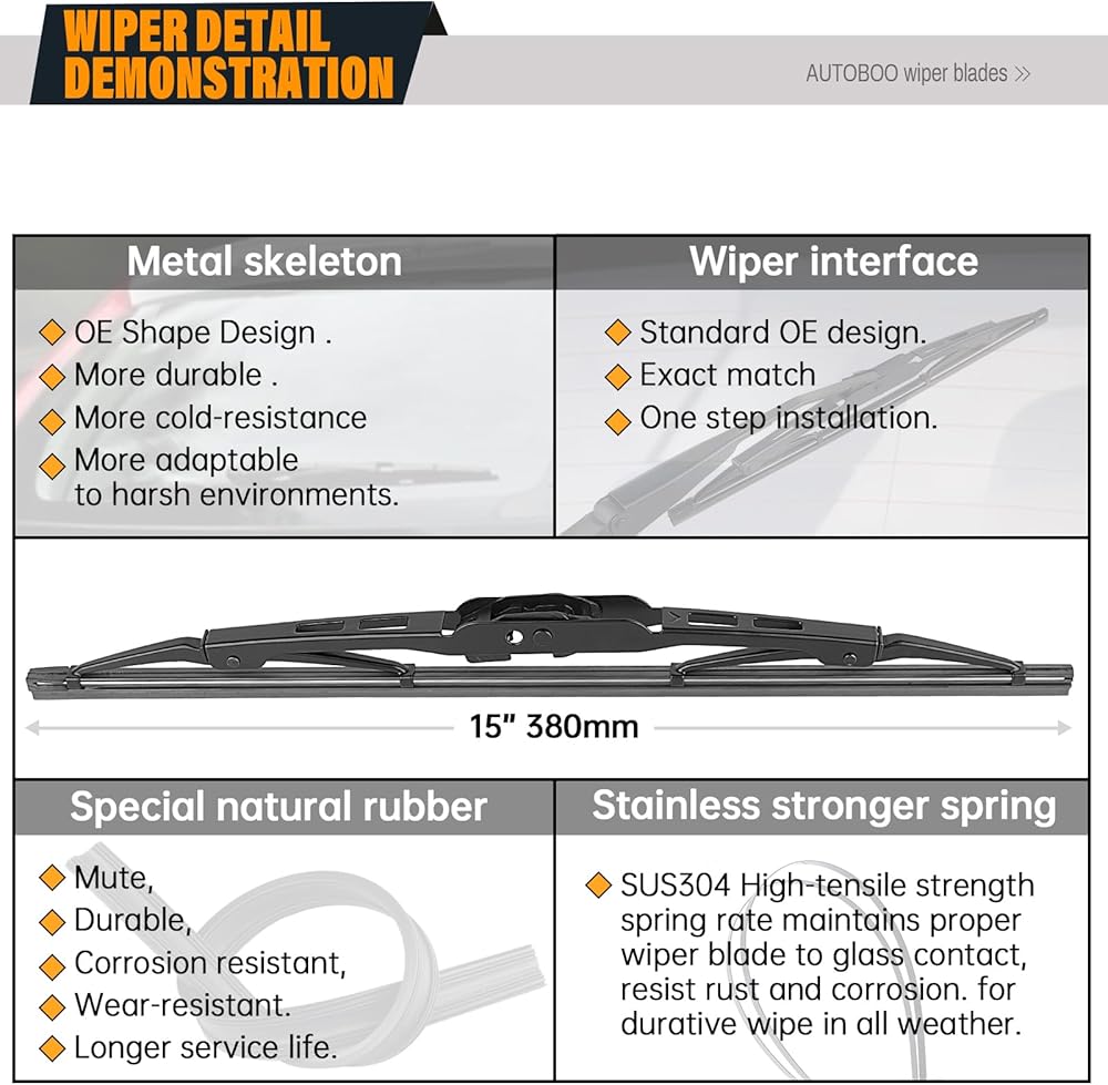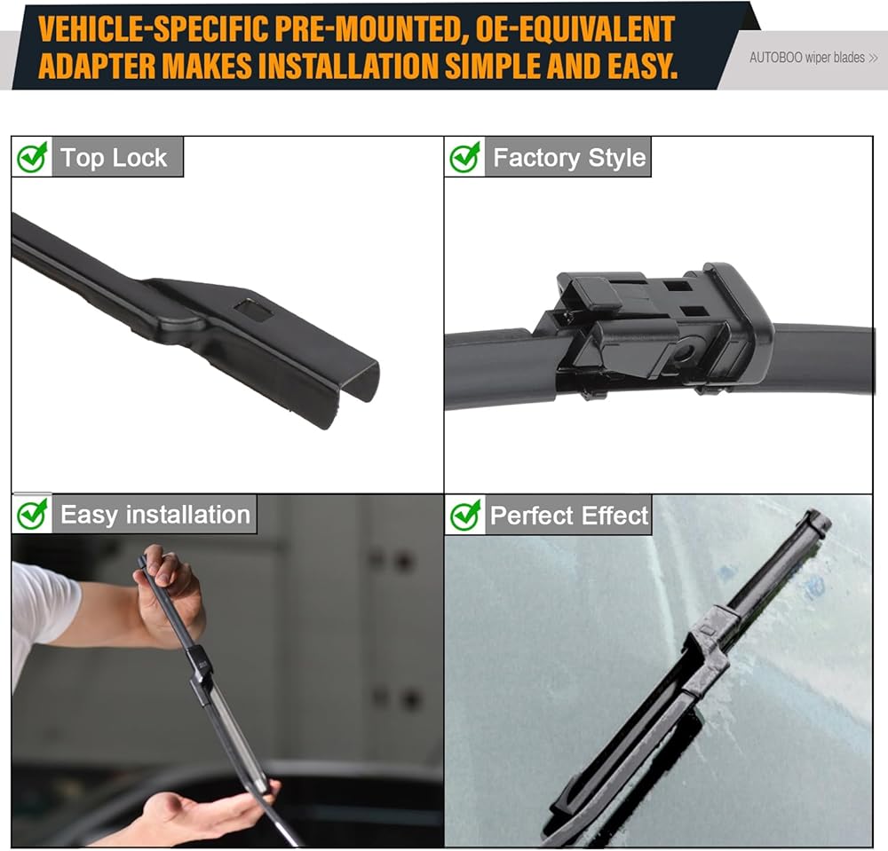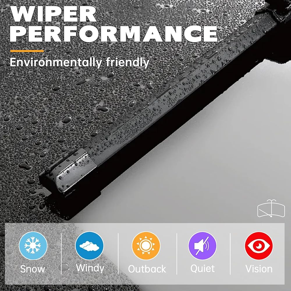 • 【أداء مناسب لجميع الأحوال الجوية】- توفر نقطة الضغط 1,500 الحاصلة على براءة اختراع على الشفرة الأداء الأكثر هدوءًا. تضمن الرؤية الأعلى ومسح قاعدة البيانات المنخفضة سلامة القيادة.