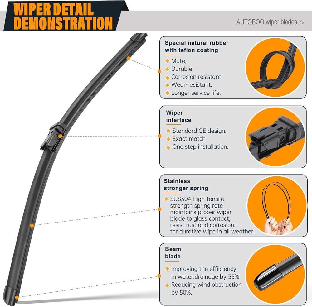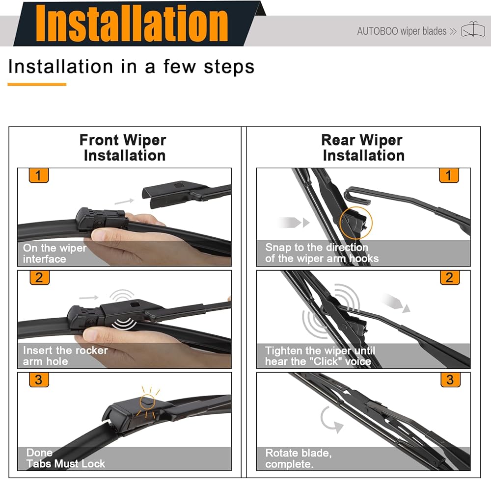 • 【ما تحصل عليه】مجموعة كاملة من 3 شفرات ممسحة: 26 بوصة + 14 بوصة + 10 بوصة (اليسار واليمين والخلف)، ضمان لمدة 12 شهرًا بدون قلق وخدمة عملاء ودودة.