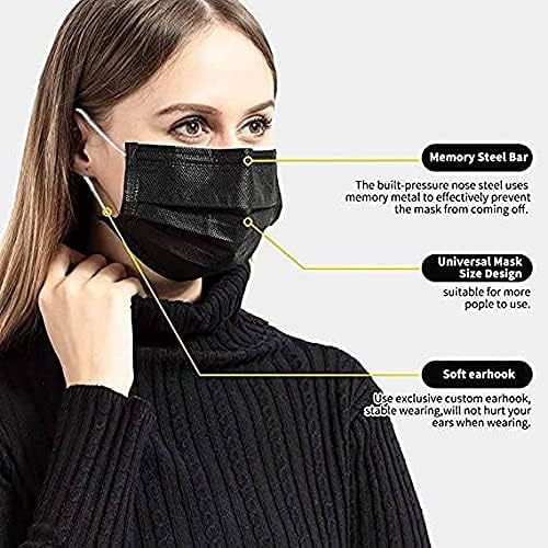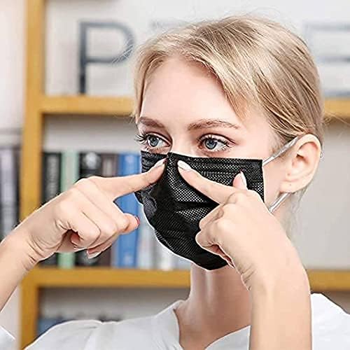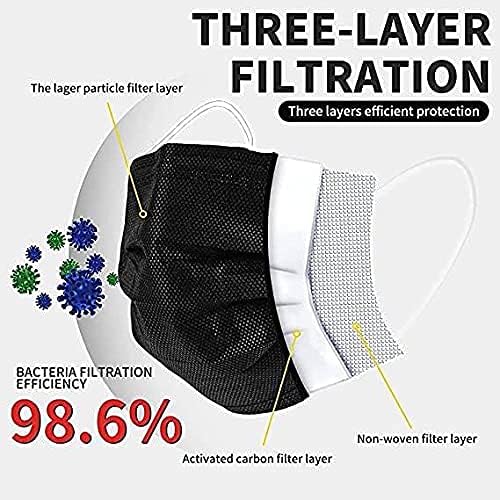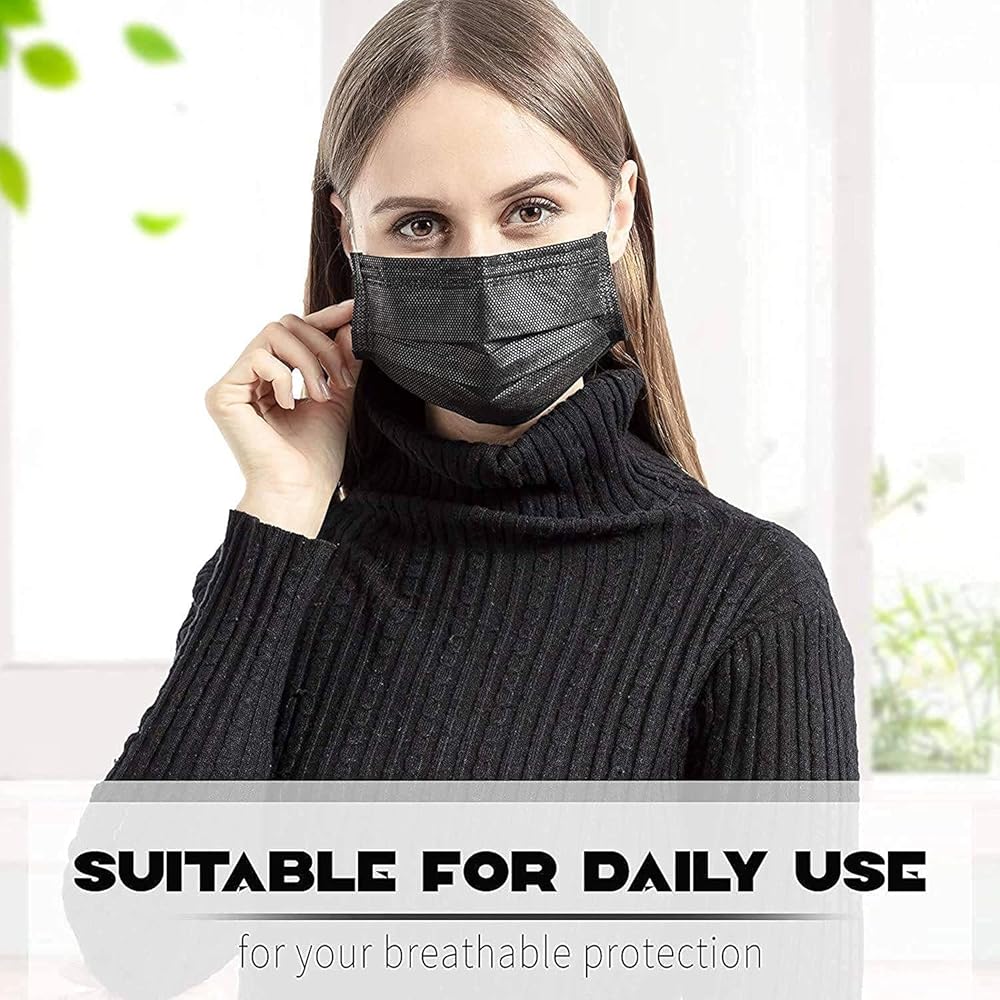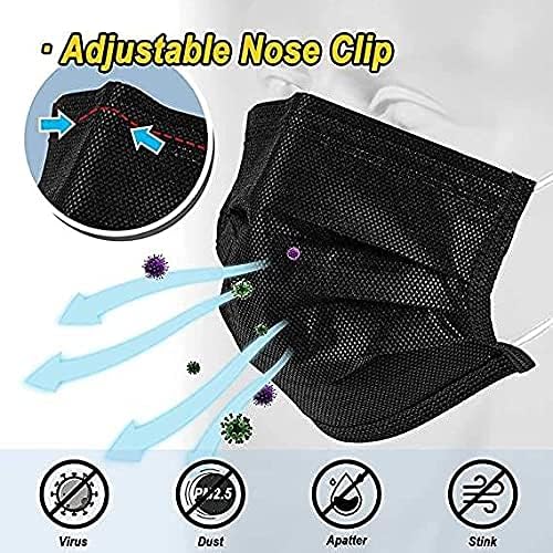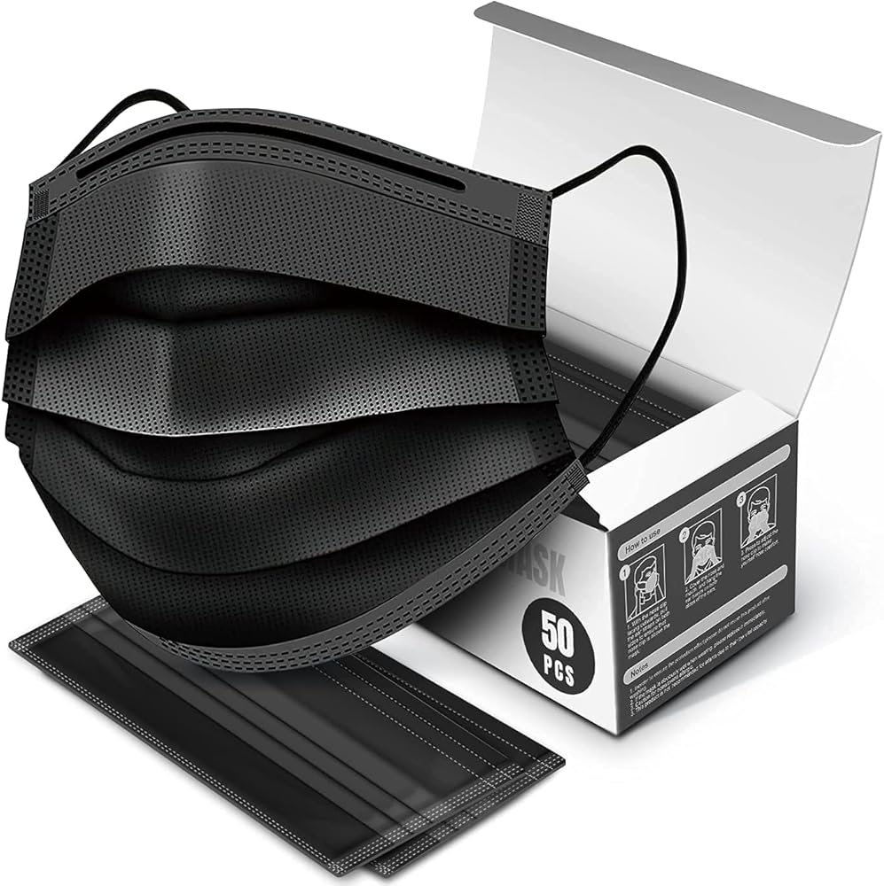 50 قطعة من أقنعة الوجه السوداء التي يمكن التخلص منها مع. حماية أمنية عالية التهوية من أجل النظافة، 3 طبقات (طبقتين غير منسوجة وطبقة واحدة من القماش المنصهر)، مضاد للماء والغبار للأسنان، وصالونات الأظافر/الشعر