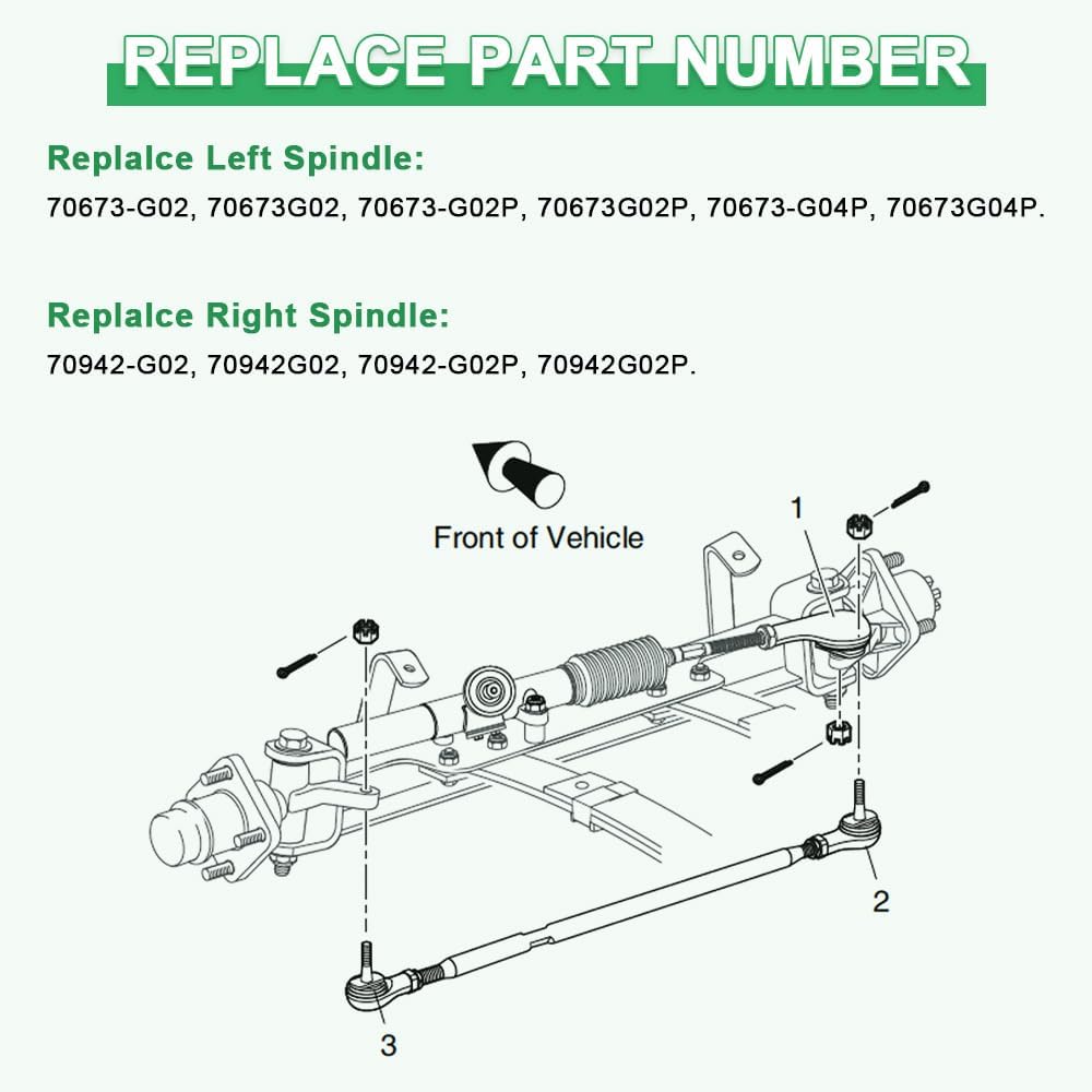 مجموعة عمود دوران عربة الجولف، متوافقة مع EZGO TXT 2001-up بجانب الركاب بالغاز والكهرباء وجانب السائق، استبدال المغزل الأيسر 70673-G02، المغزل الأيمن 70942-G02